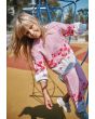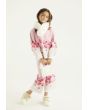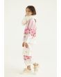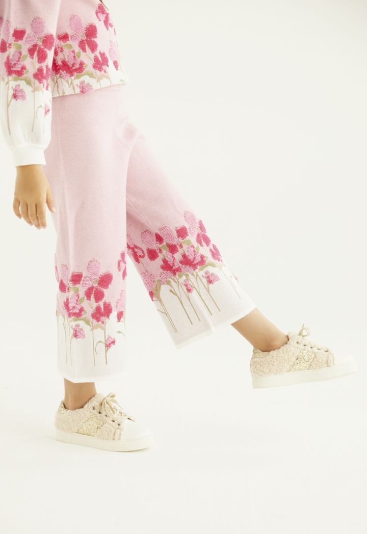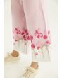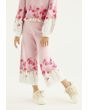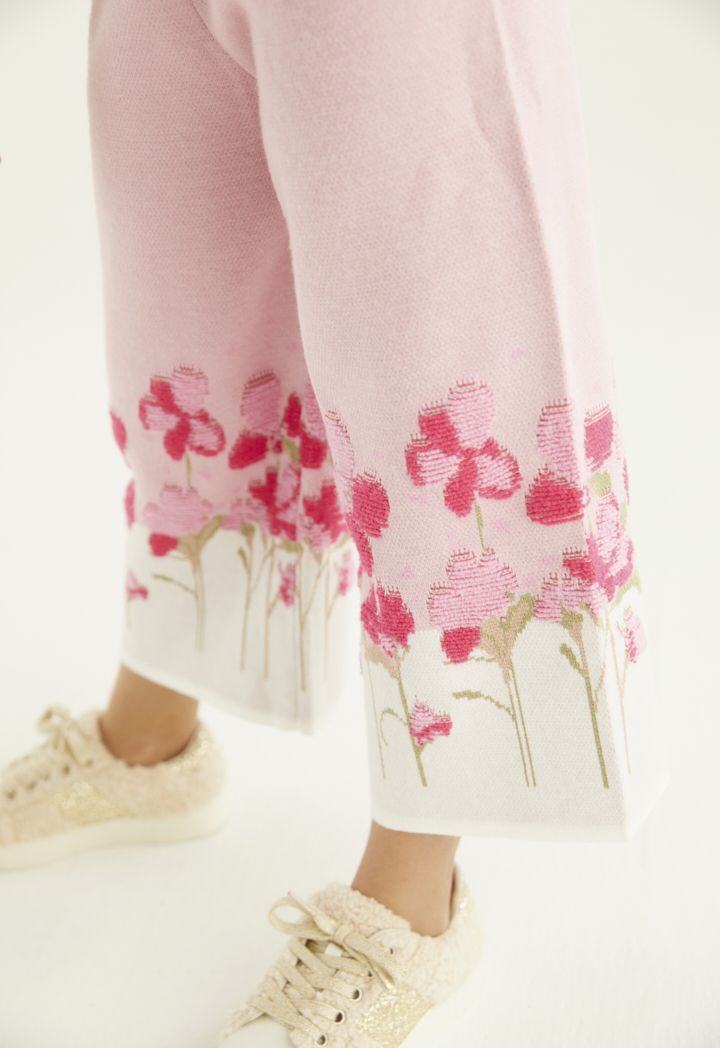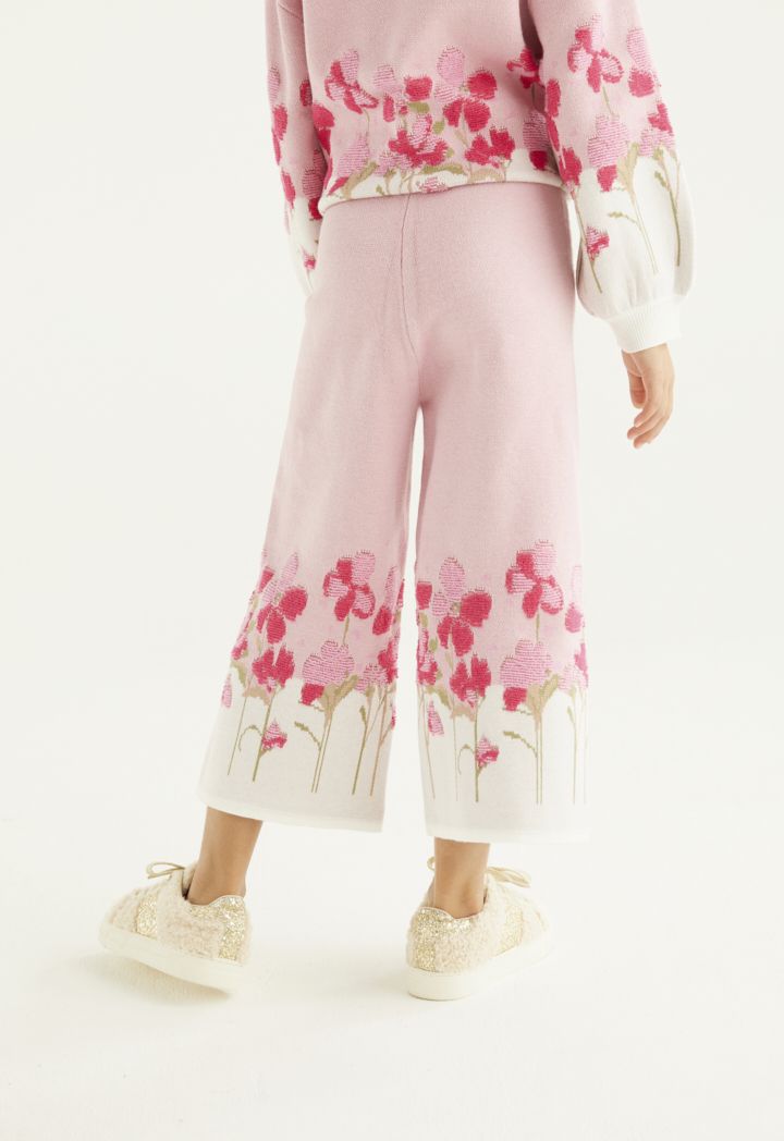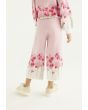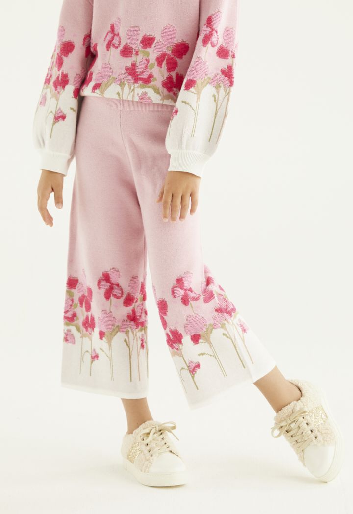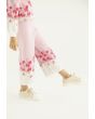 A vibrant pair of pants that features a printed floral design and an elastic waist.