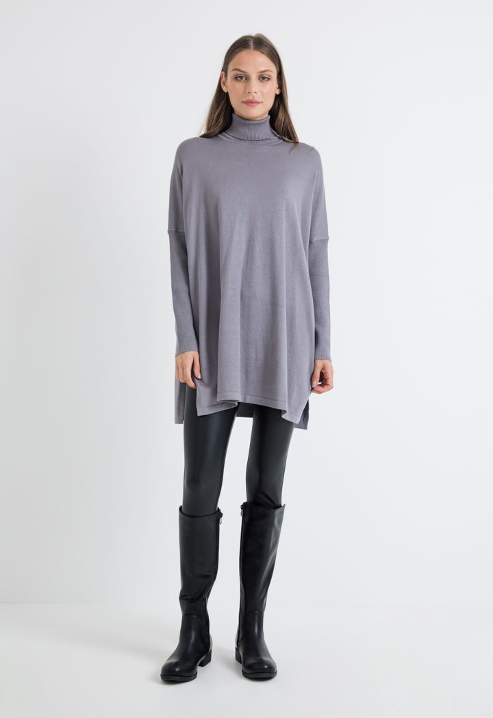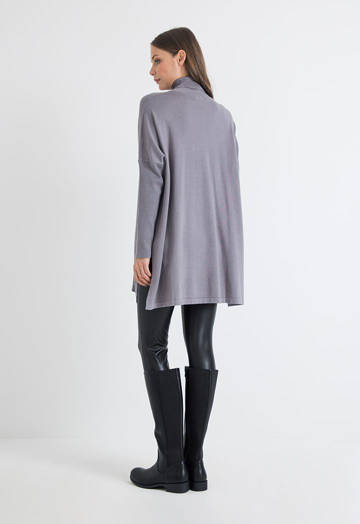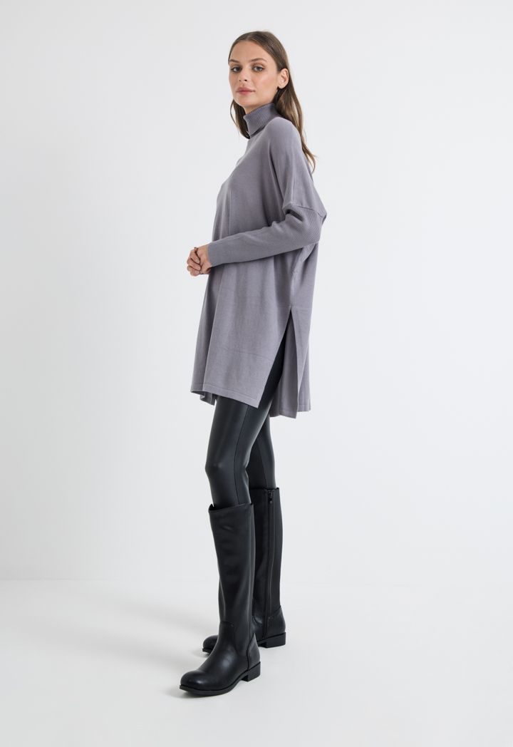 Knitted High Neck Side Slit Oversized Blouse |