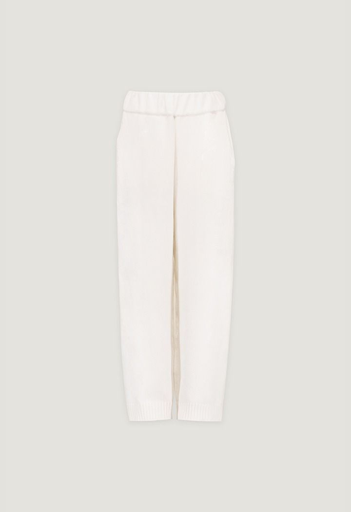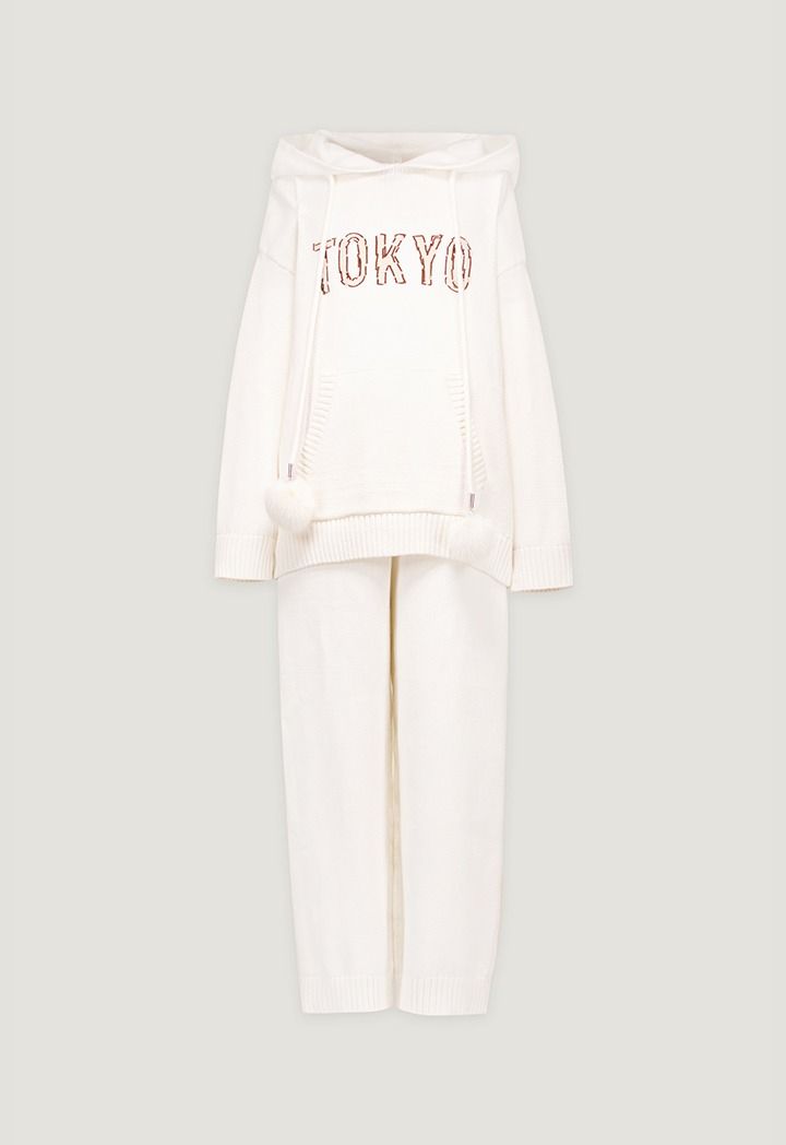 A comfortable training set with a knitted embroidered hoodie, and straight leg pants.