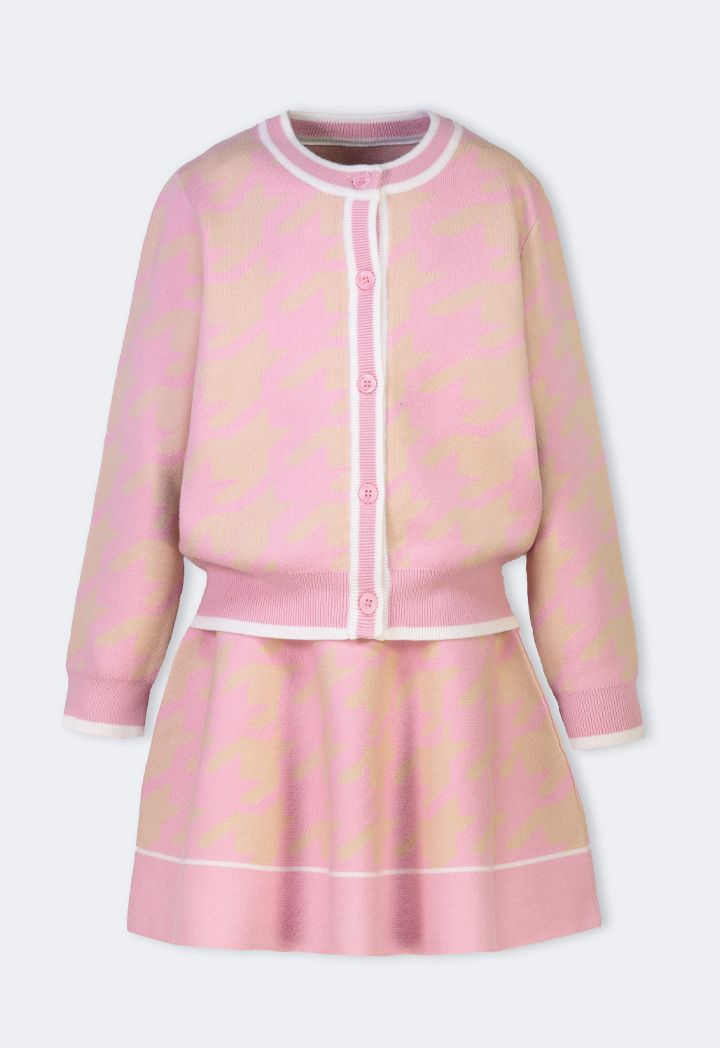 Knitted Houndstooth Jacket and Skirt Set (2PCS) |