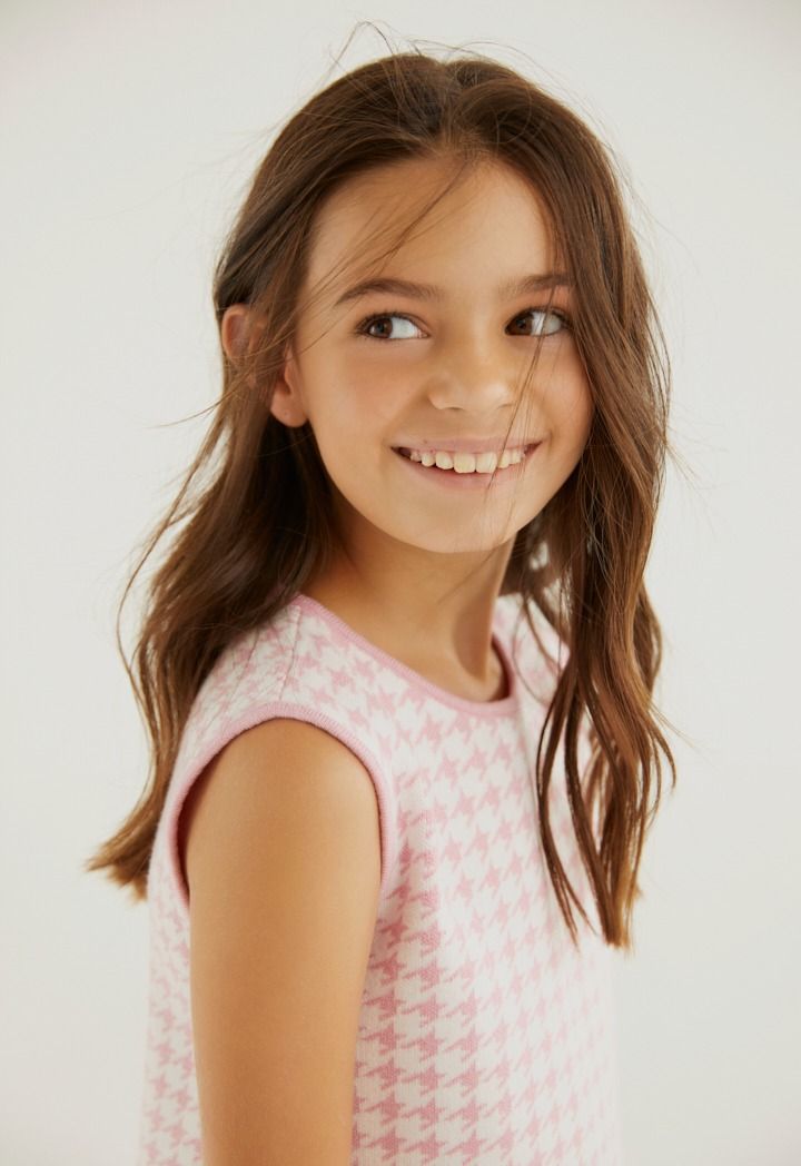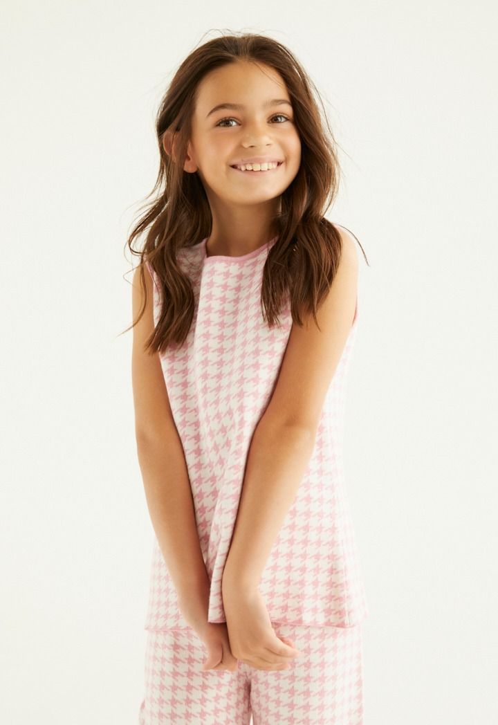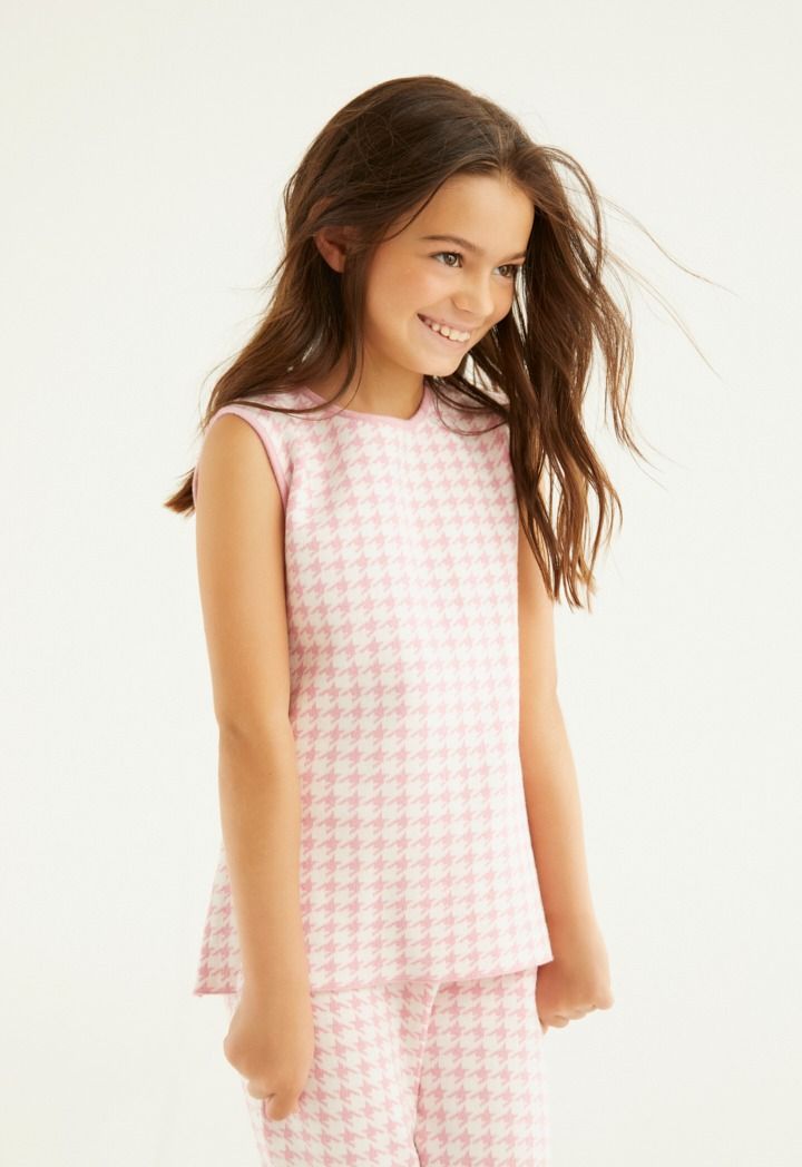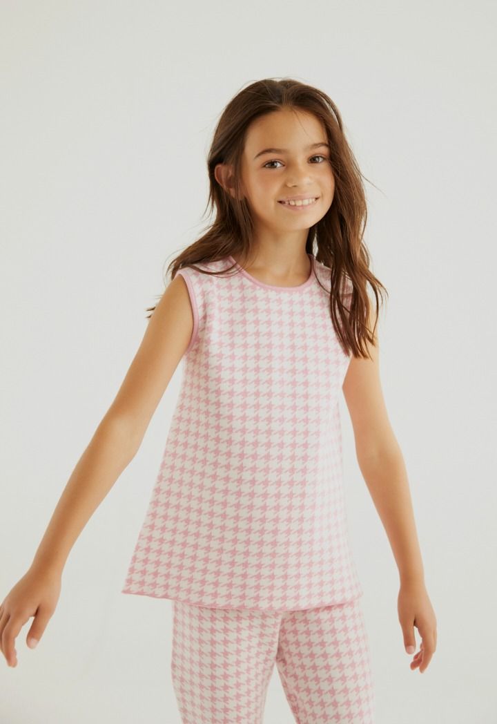 Invest in this knitted houndstooth top featuring a sleeveless design.