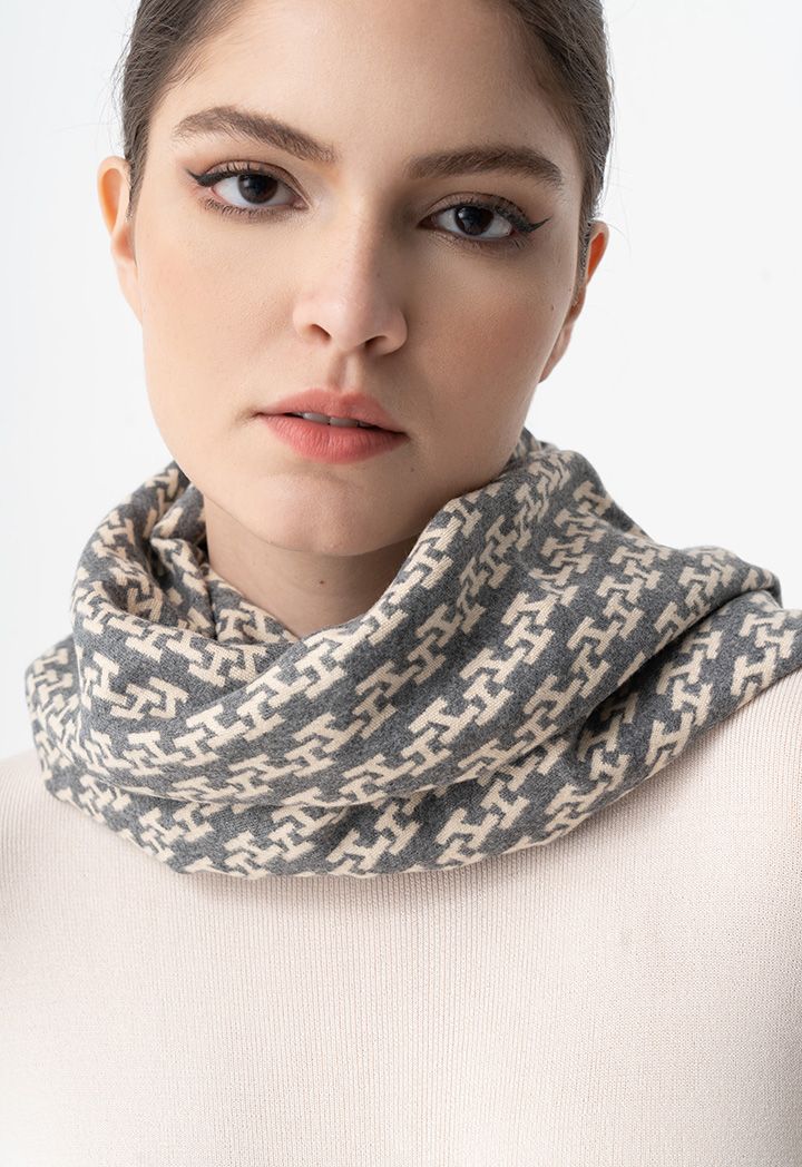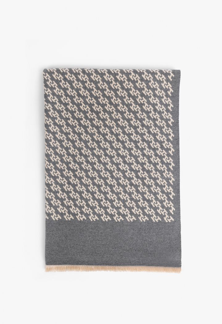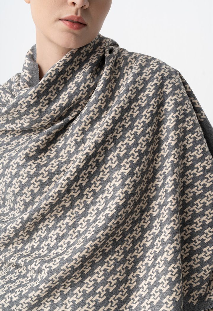 Engulf yourself with warmth with this knitted shawl that features an alluring monogram design.