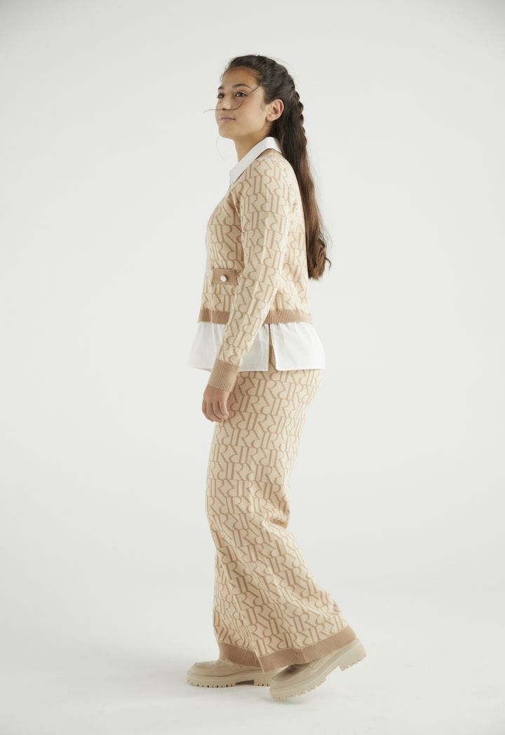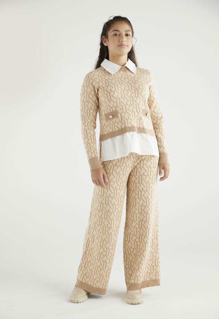 An elegant knitted monogram trousers that are best styled with their matching design blouse.