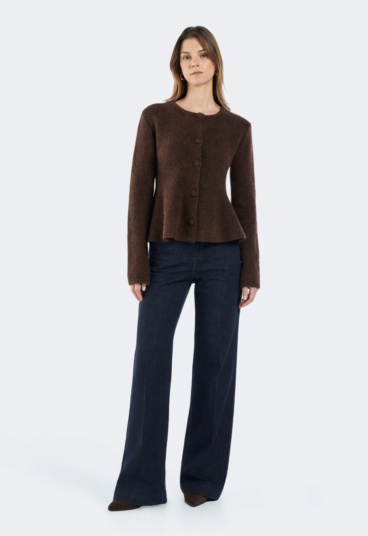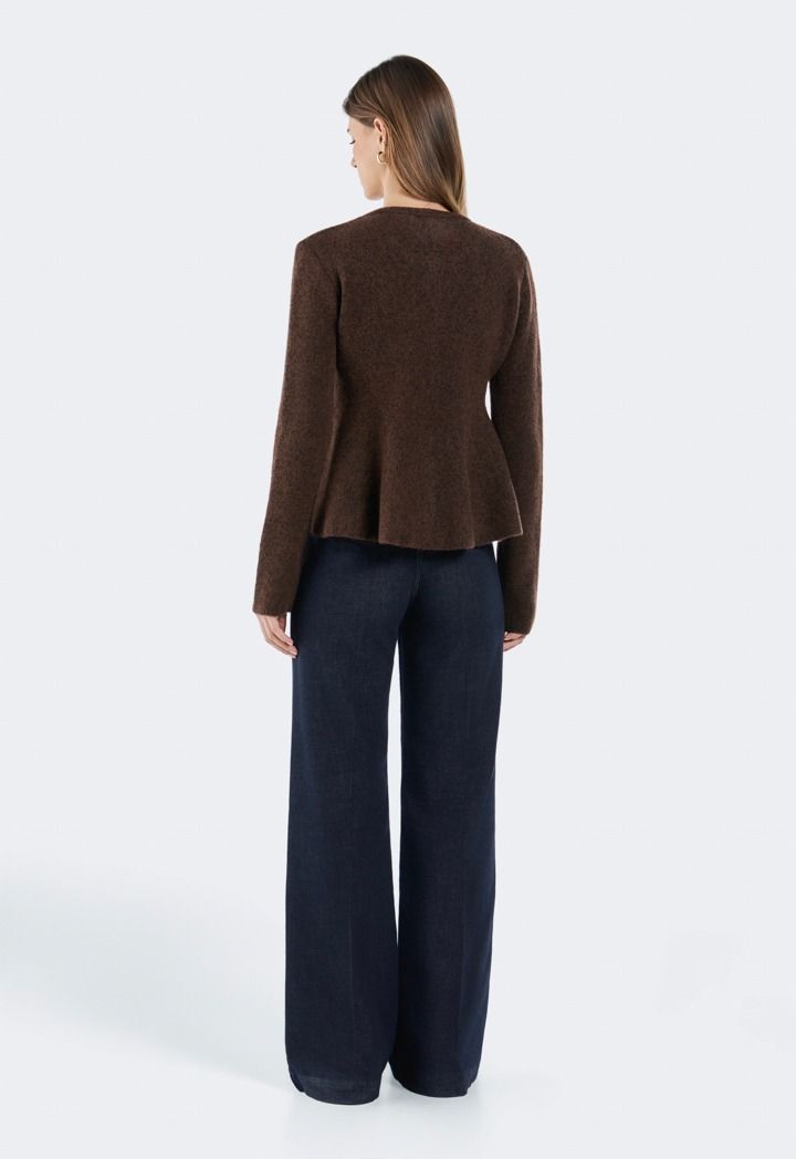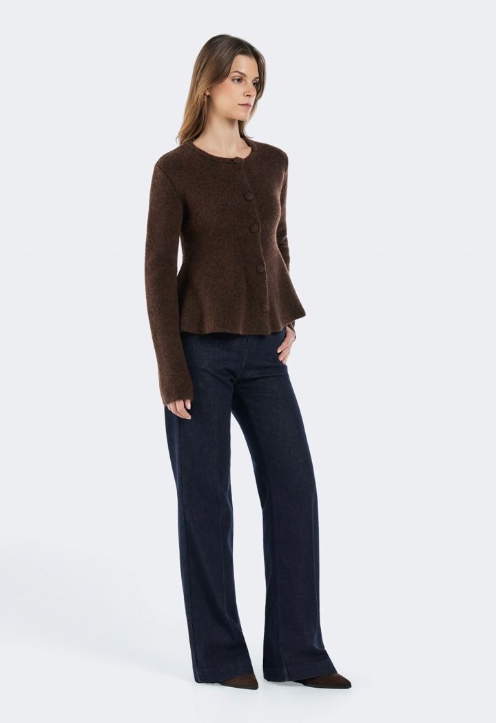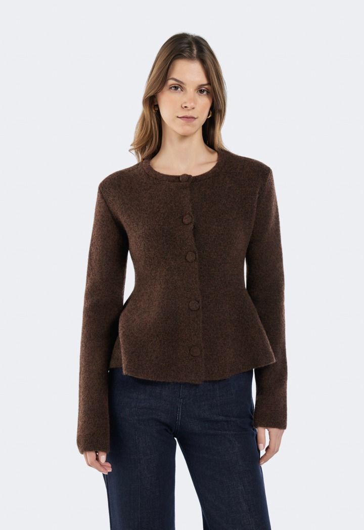 A soft knitted cardigan with a flattering peplum silhouette for effortless elegance.