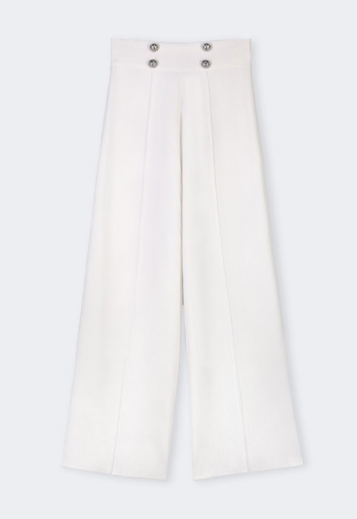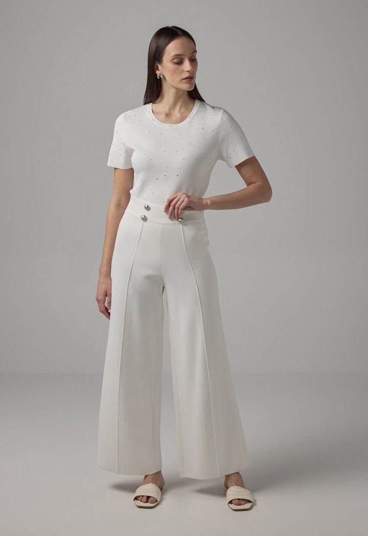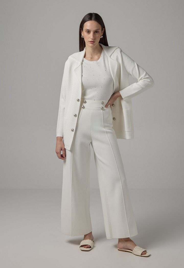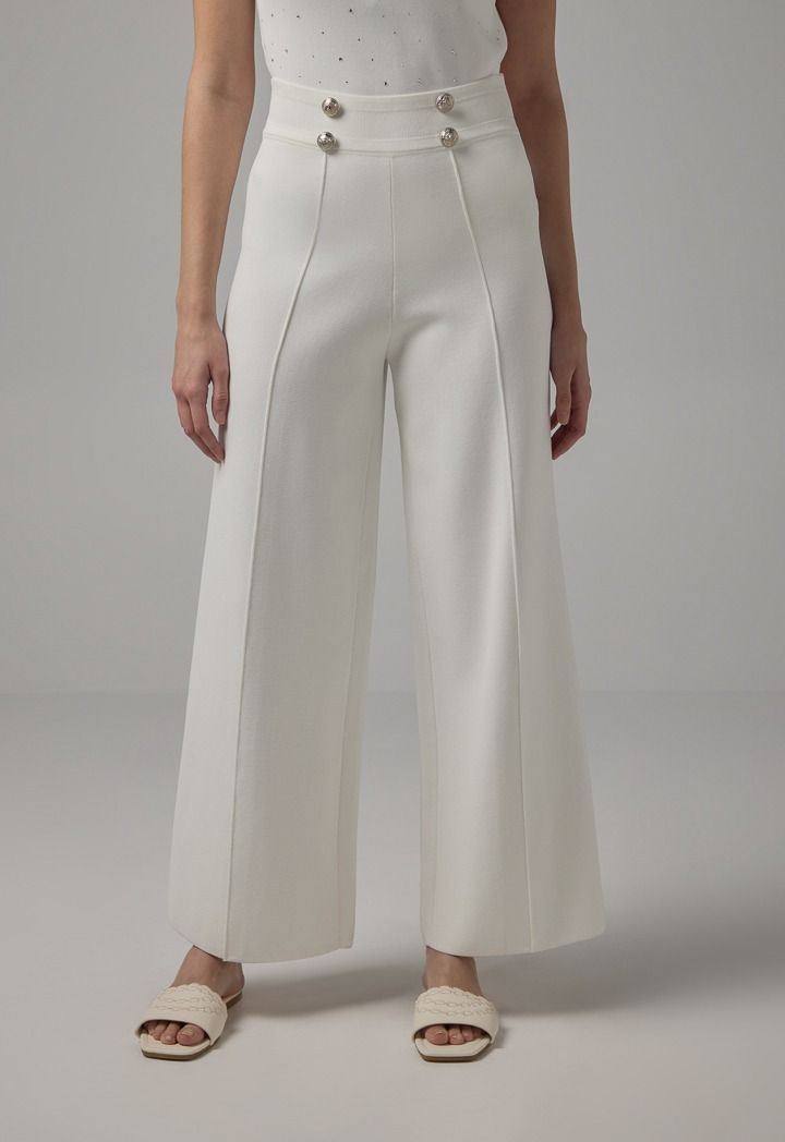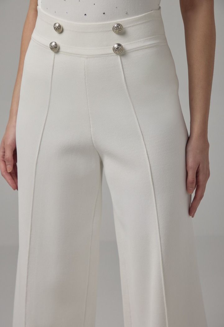 Design: Solid, Knitted, Wide Leg, Buttons Details, Pin Tuck At Front