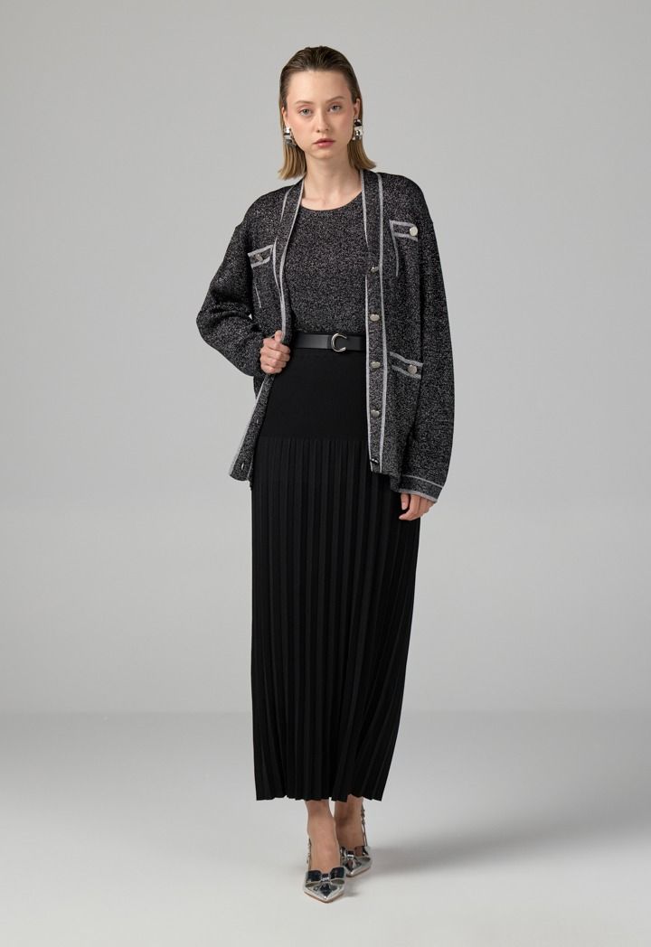 Knitted Pleated Maxi Skirt |