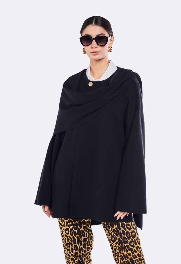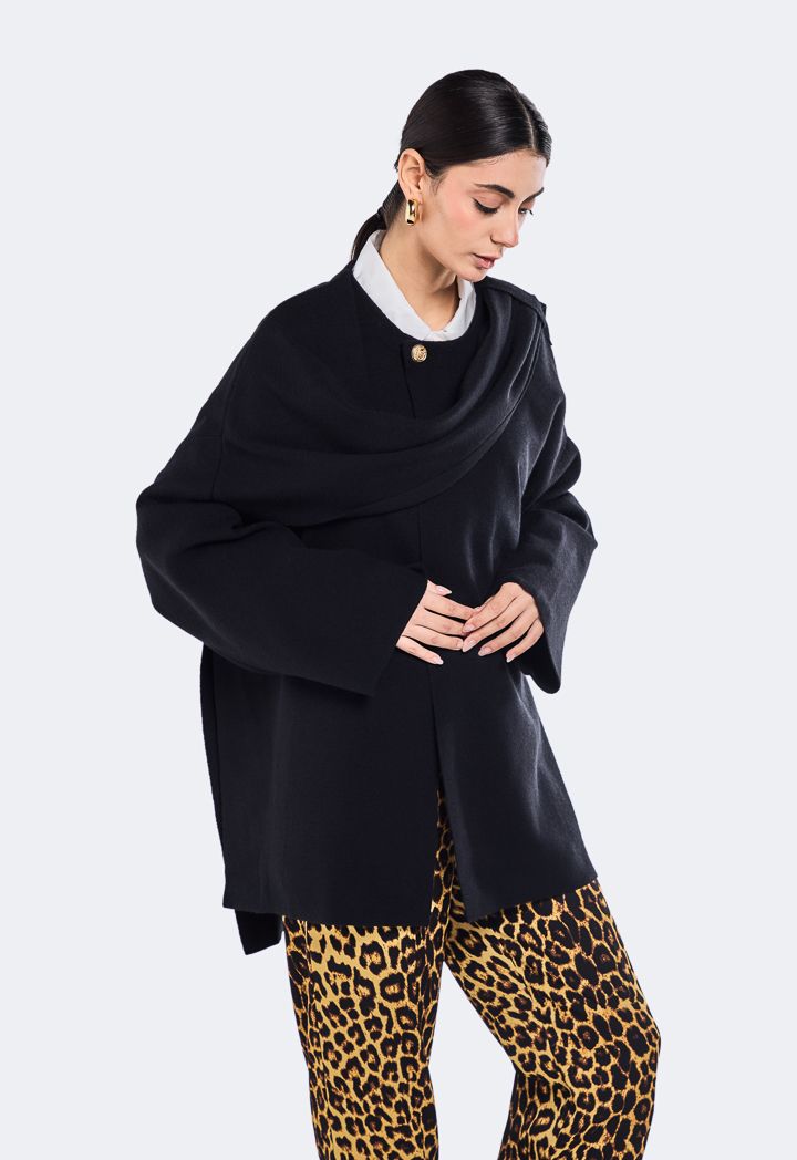 Style-out the cold with this knitted poncho, the perfect throw-on piece for casual winter days.