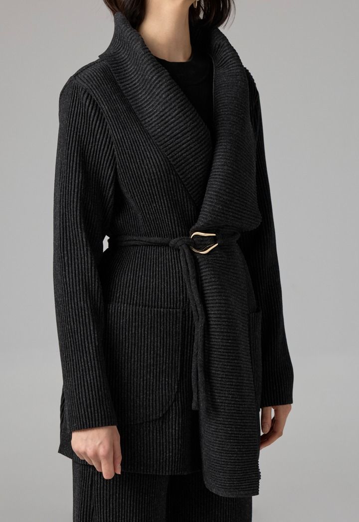 Design: Solid, Knitted, Ribbed, Belt, Pockets