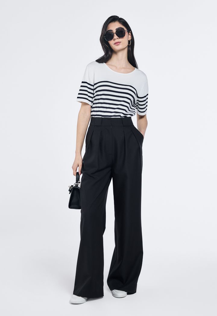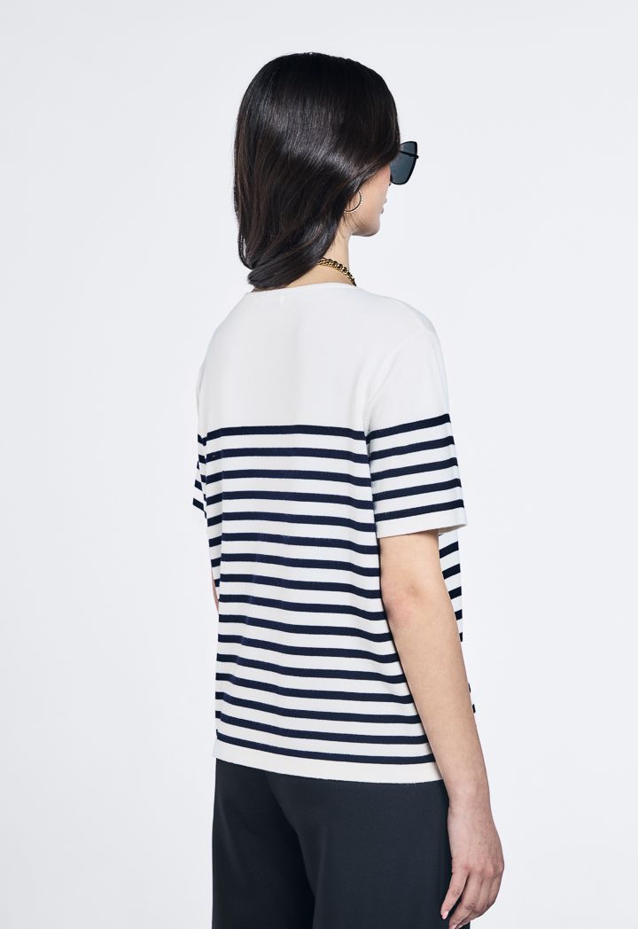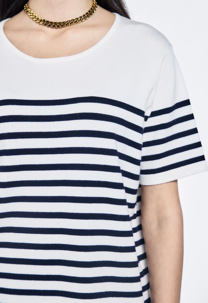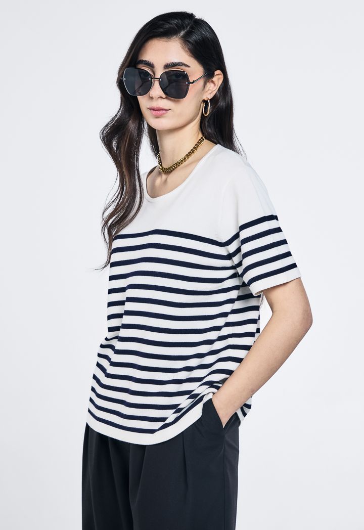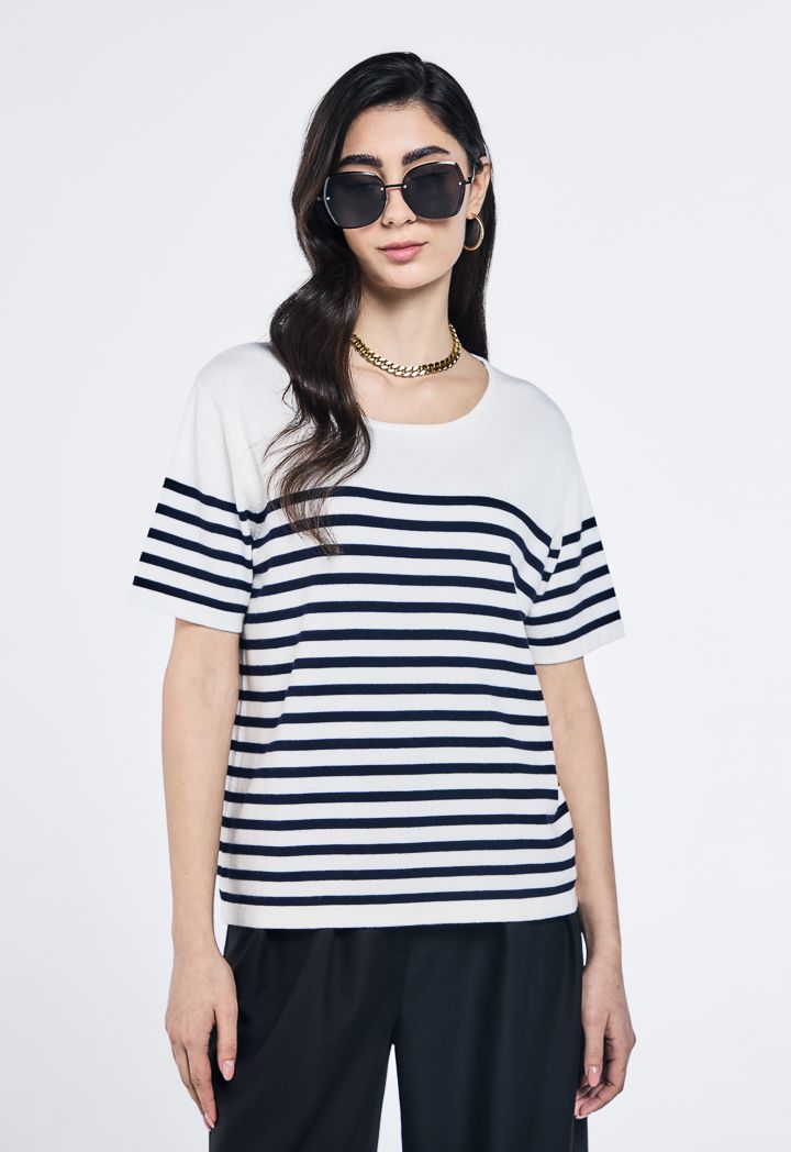 Knitted Striped Short Sleeve Top |