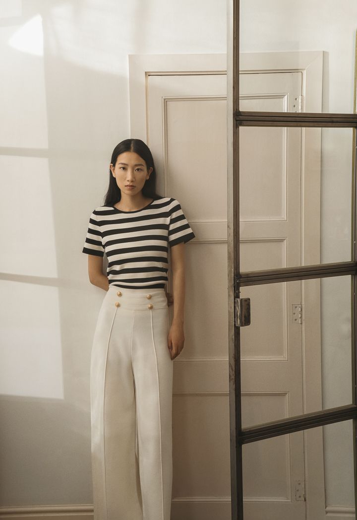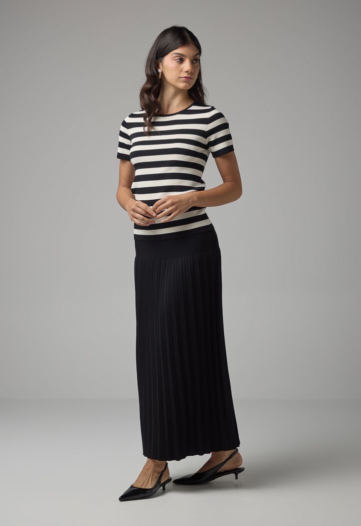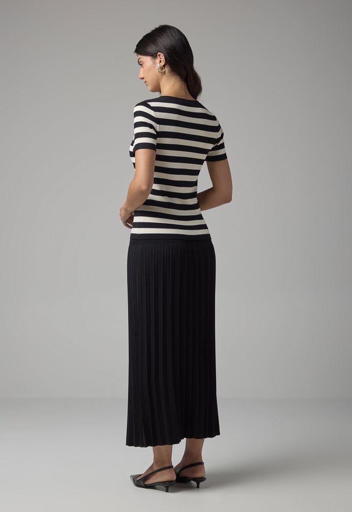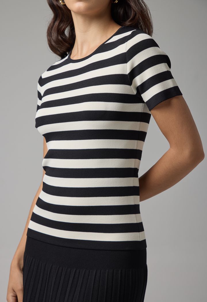 Knitted Striped Short Sleeve Top |