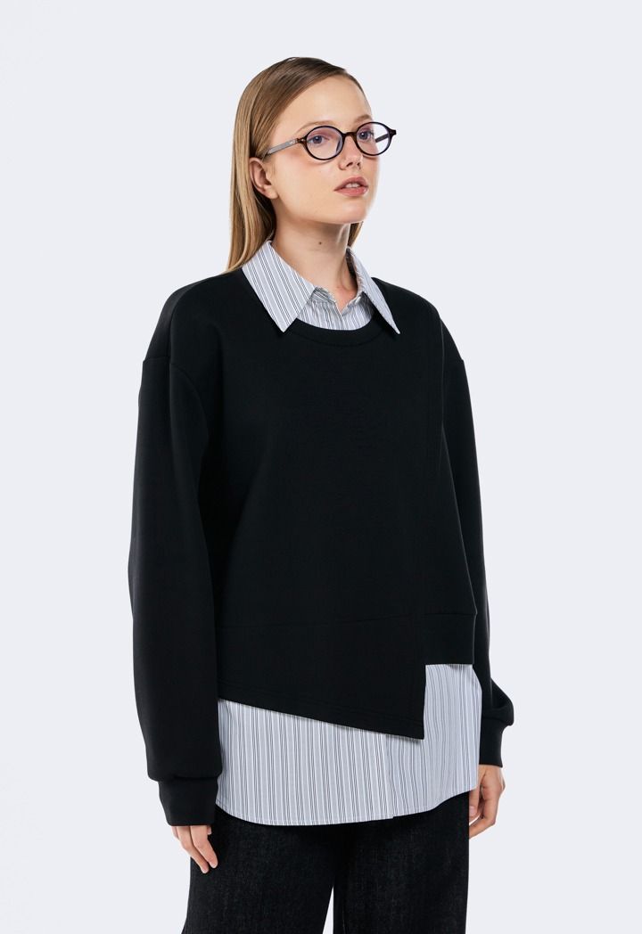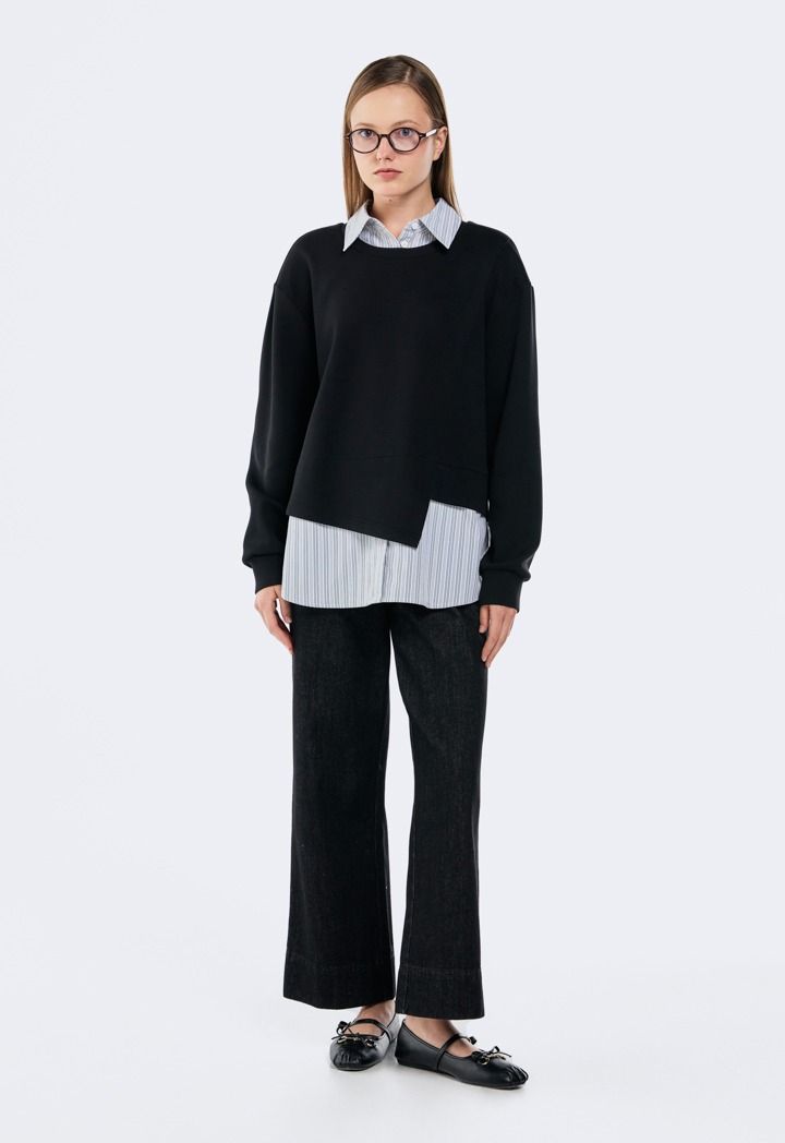 Material: Body: 77% Cotton, 18% Polyester, 5% Elastane. Woven: 56% Polyester, 23% Lyocell, 21% Cotton
