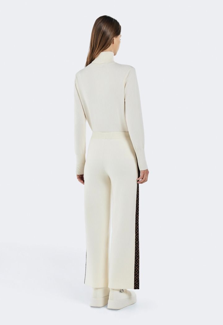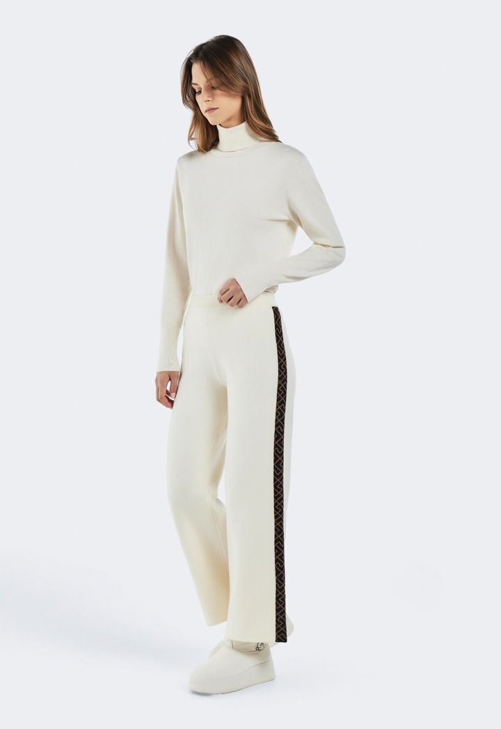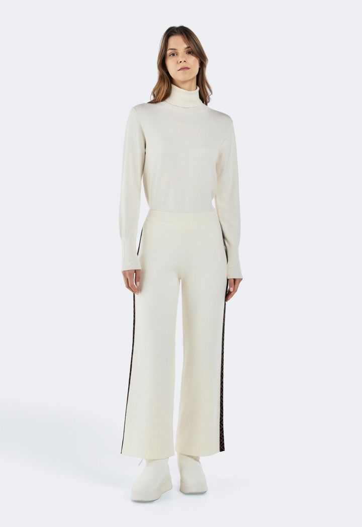 Design: Knitted, High Waist, Wide Leg, Straight Cut, Tape Details