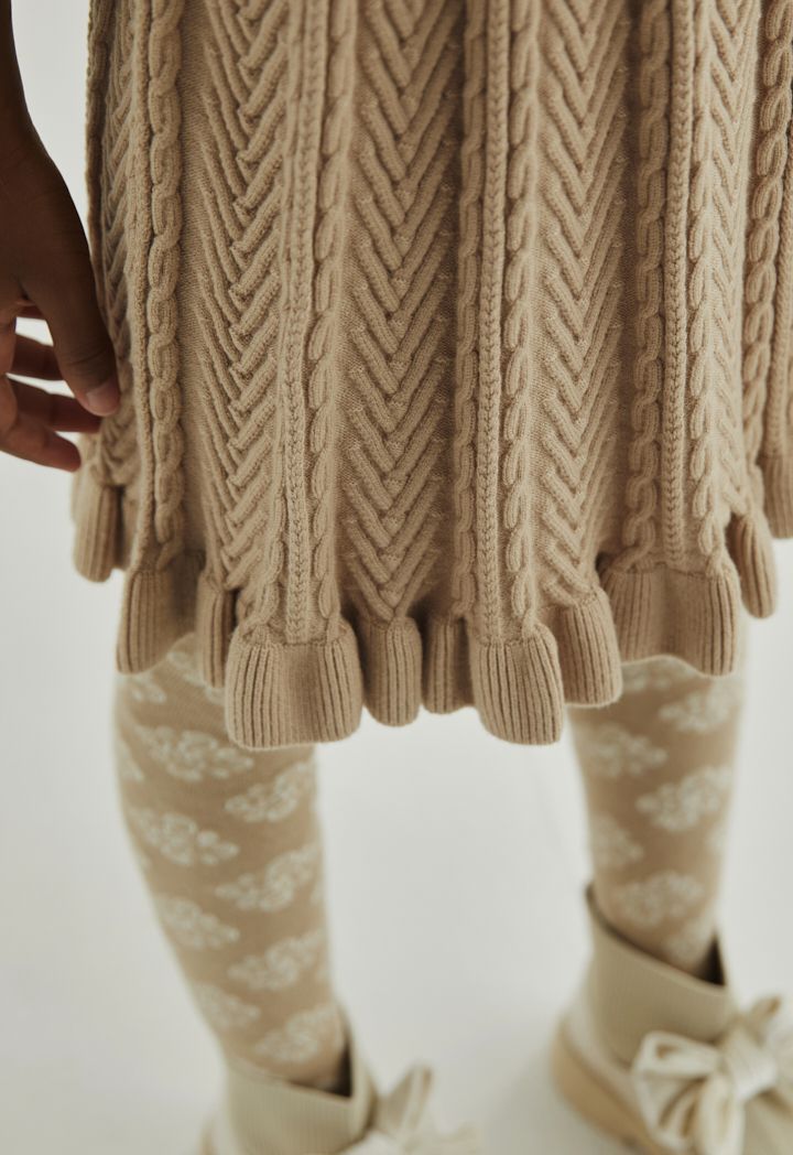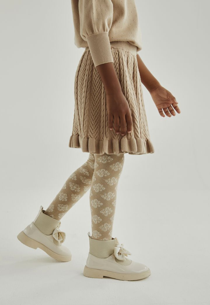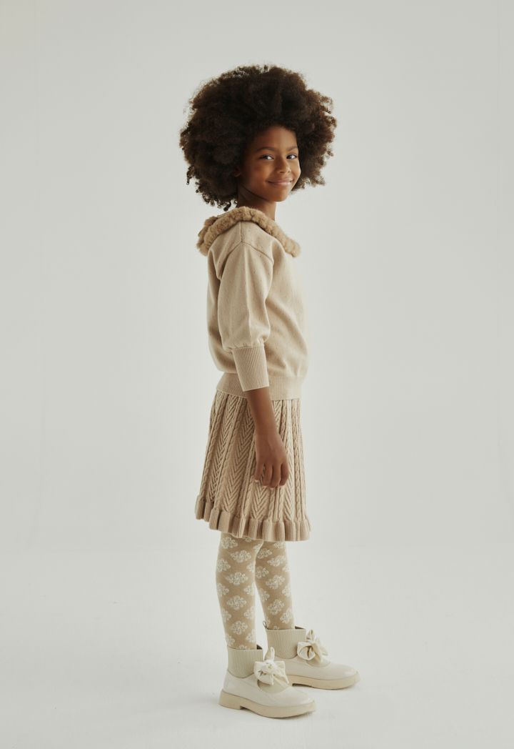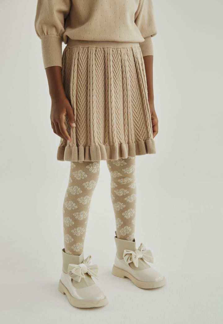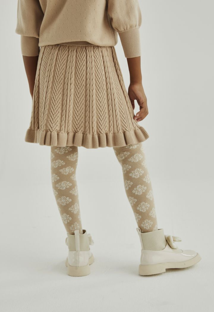 A warm skirt for the cold winter night with a knitted textured design and an elastic waist.