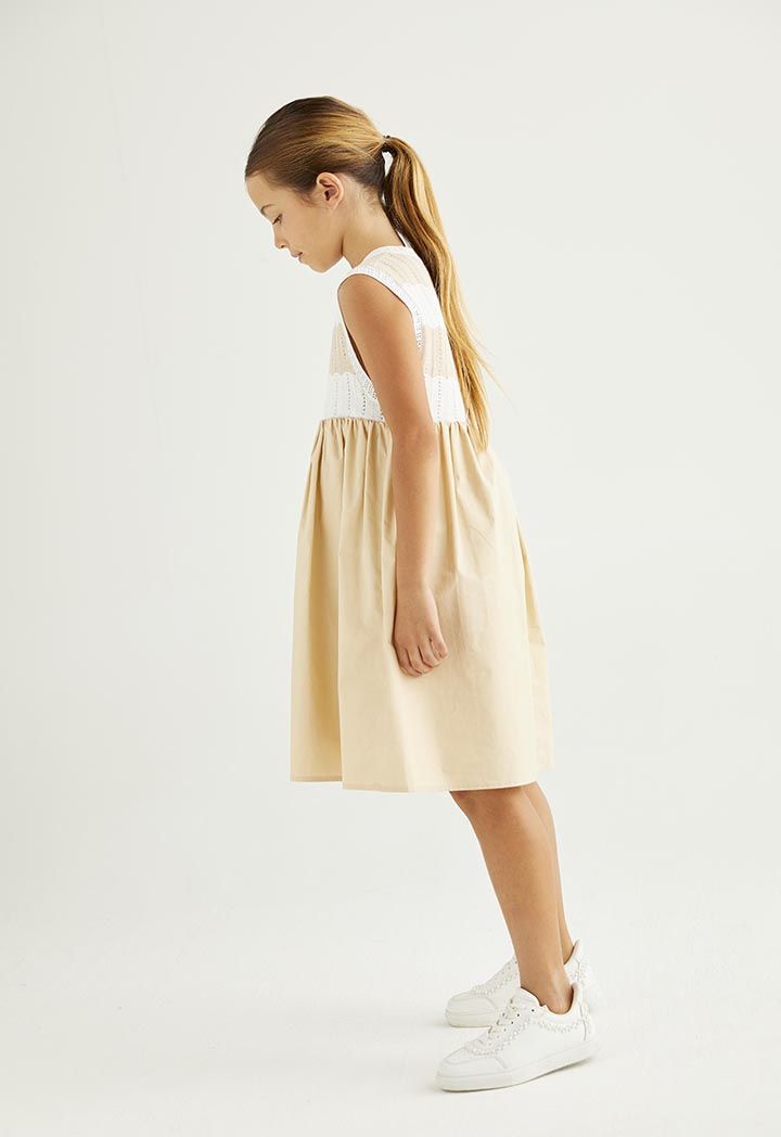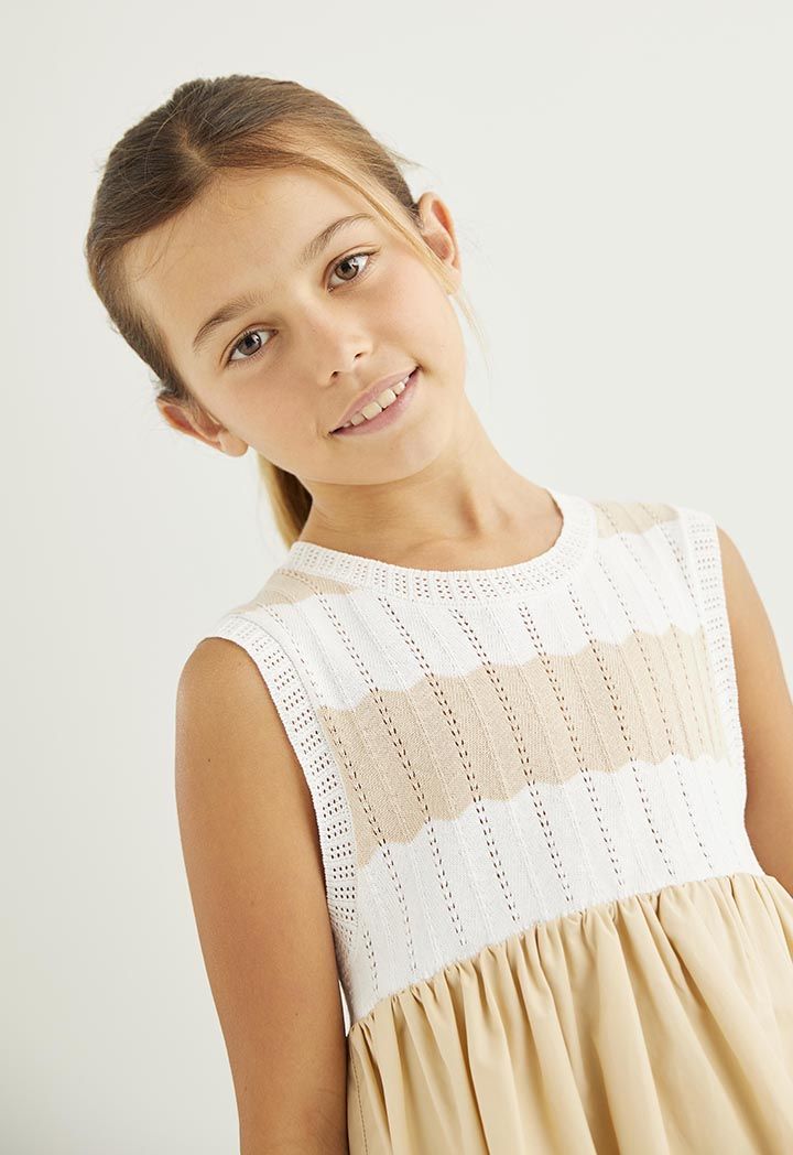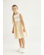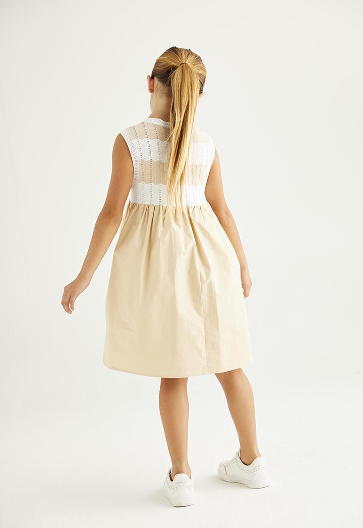 Select This Chic Solid Knitted Dress For Your Daughter. It Features a Round Neckline, Sleeveless and a pleated skirt.