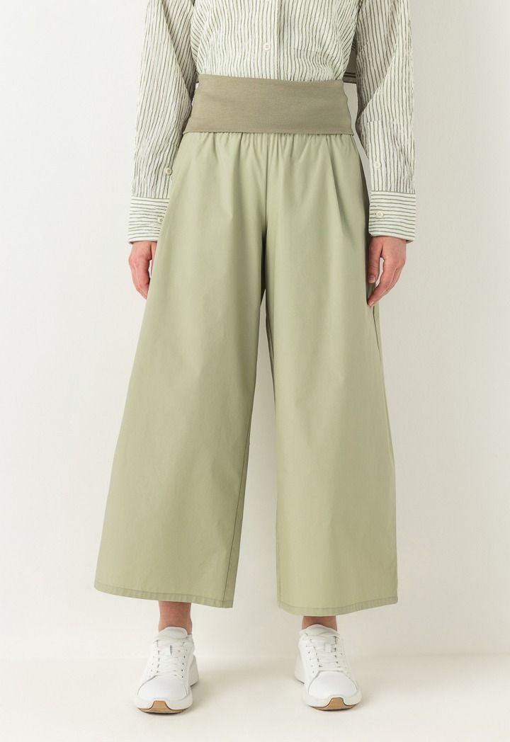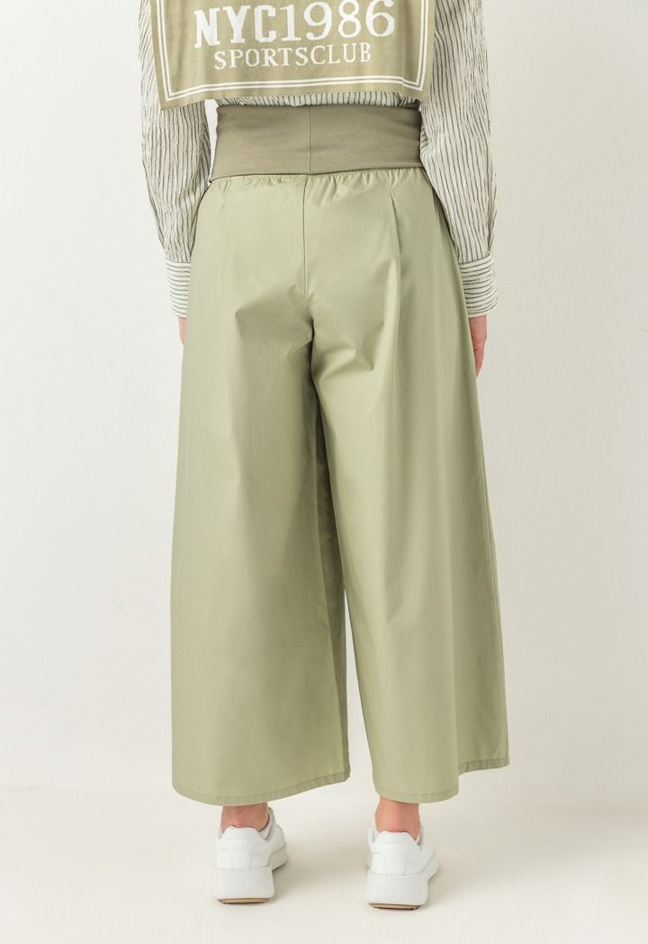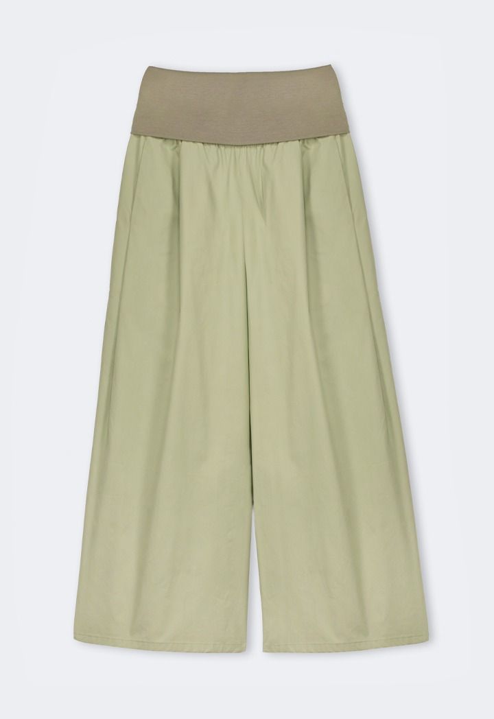 A unique pair of pants that features a knitted waist and wide leg design, a mix of comfort and style.