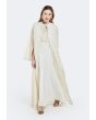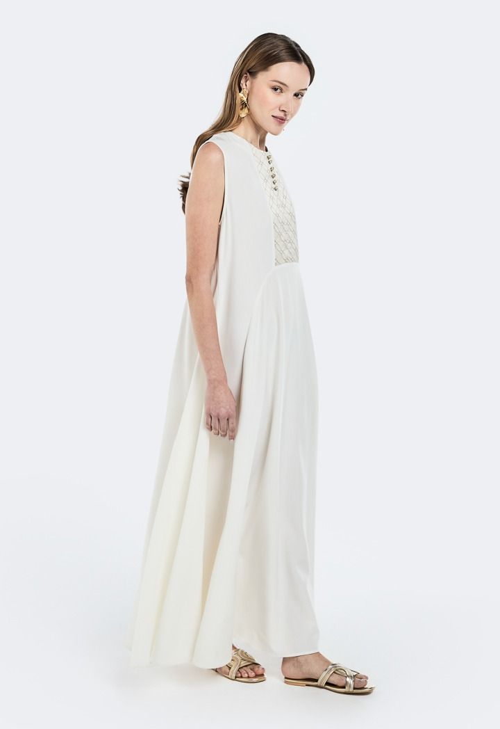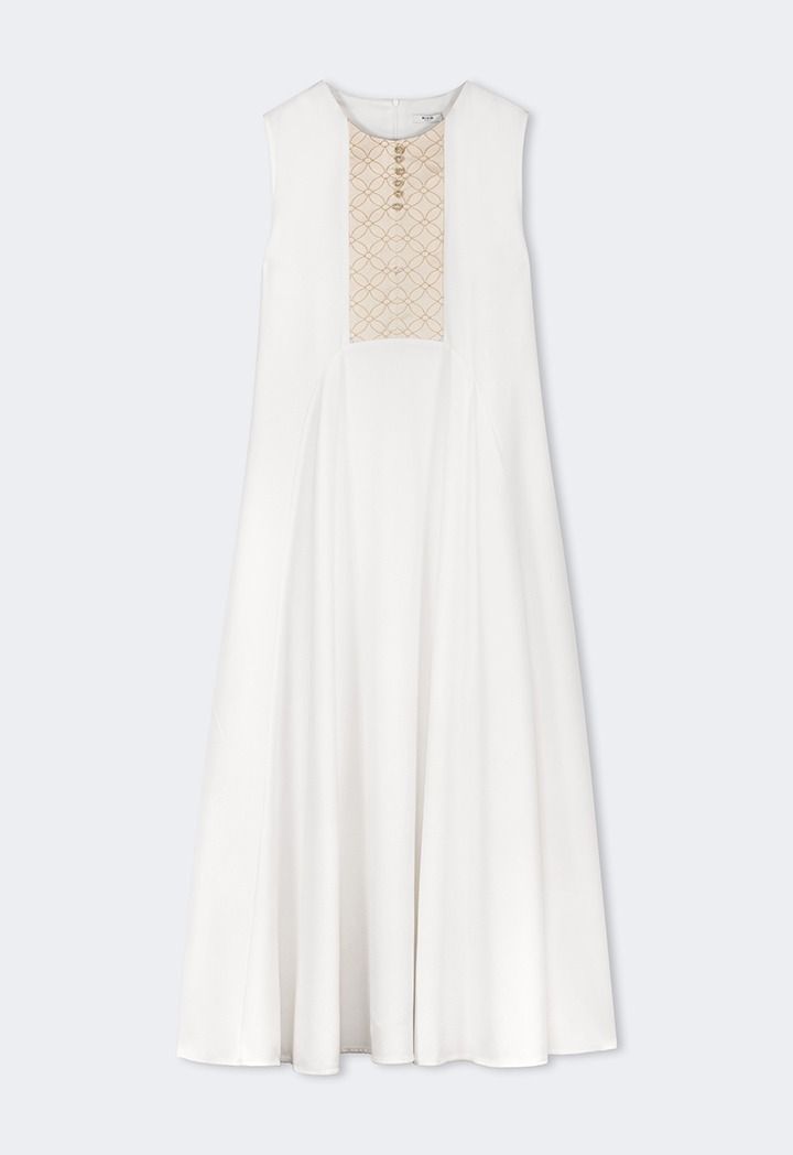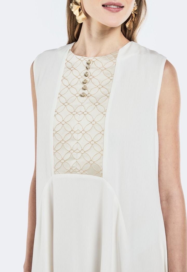Design: Solid, Knot Button Embellished, Floral Embroidered Yoke, Flared