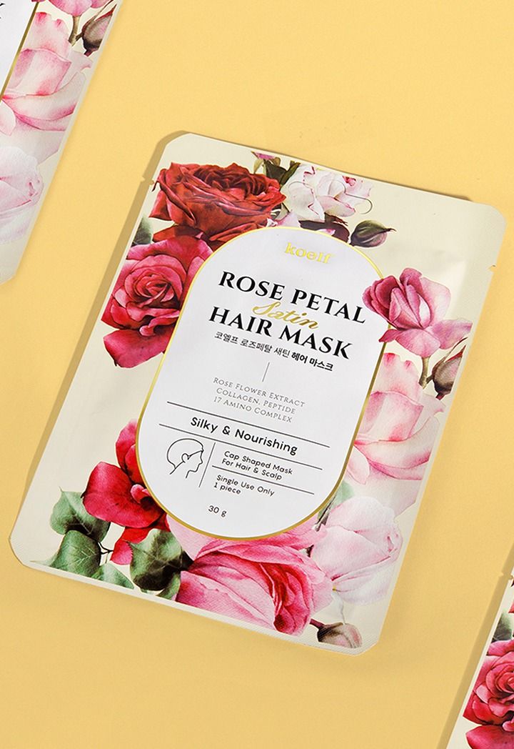 Nourishing mask-cap for hair KOELF Rose Petal Satin Hair Mask with the essence of pink soufflé, containing amino acid components makes hair shiny and keeps the scalp moist and healthy. Active ingredients in the composition: Contains rose extract, collagen and 17 amino acid peptide complex. The product nourishes hair follicles, accelerates blood circulation and stimulates hair growth, as well as soothes the scalp and prevents dandruff, heals inflammation. The mask creates a breathable, imperceptible film on the surface of the hair, which protects it from the influence of negative external factors, such as temperature changes, blow-drying, coloring, etc. For all hair types.