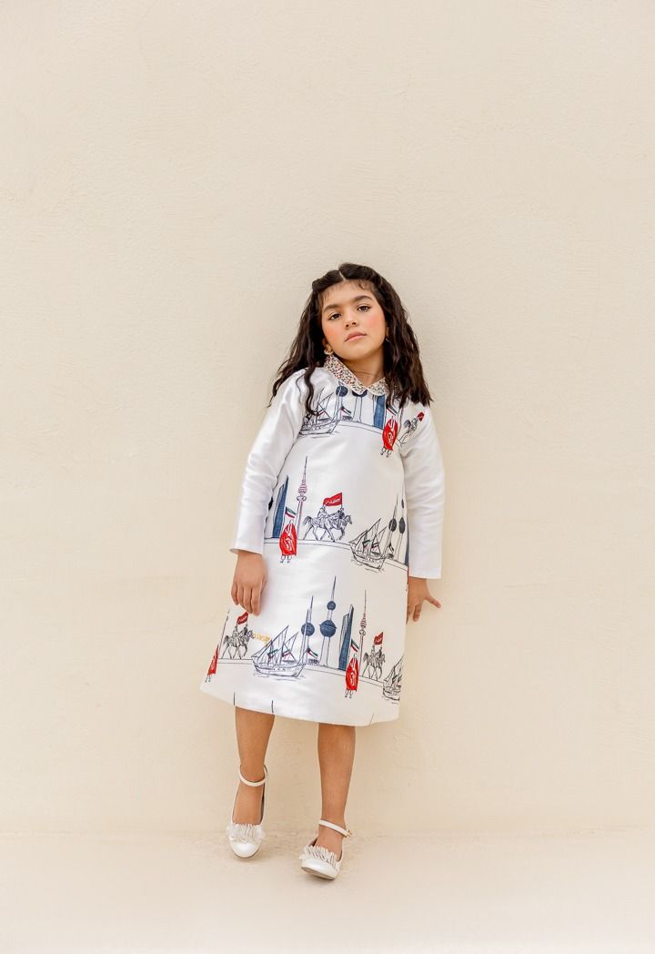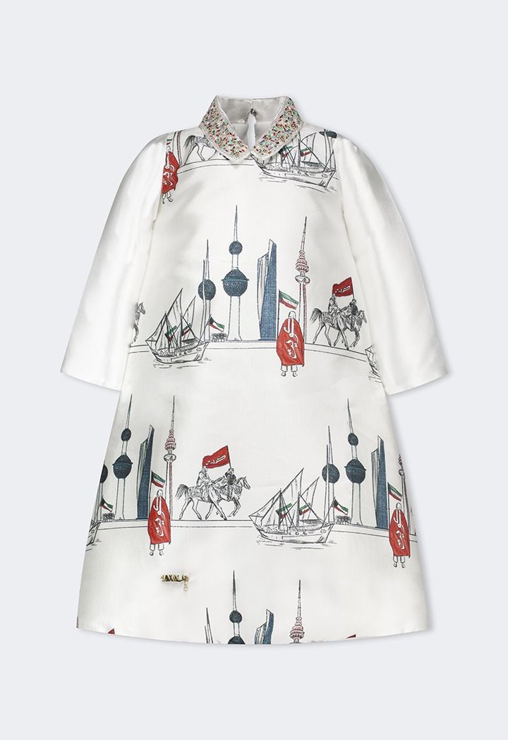 Kuwait National Day Crystal Printed Dress |