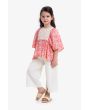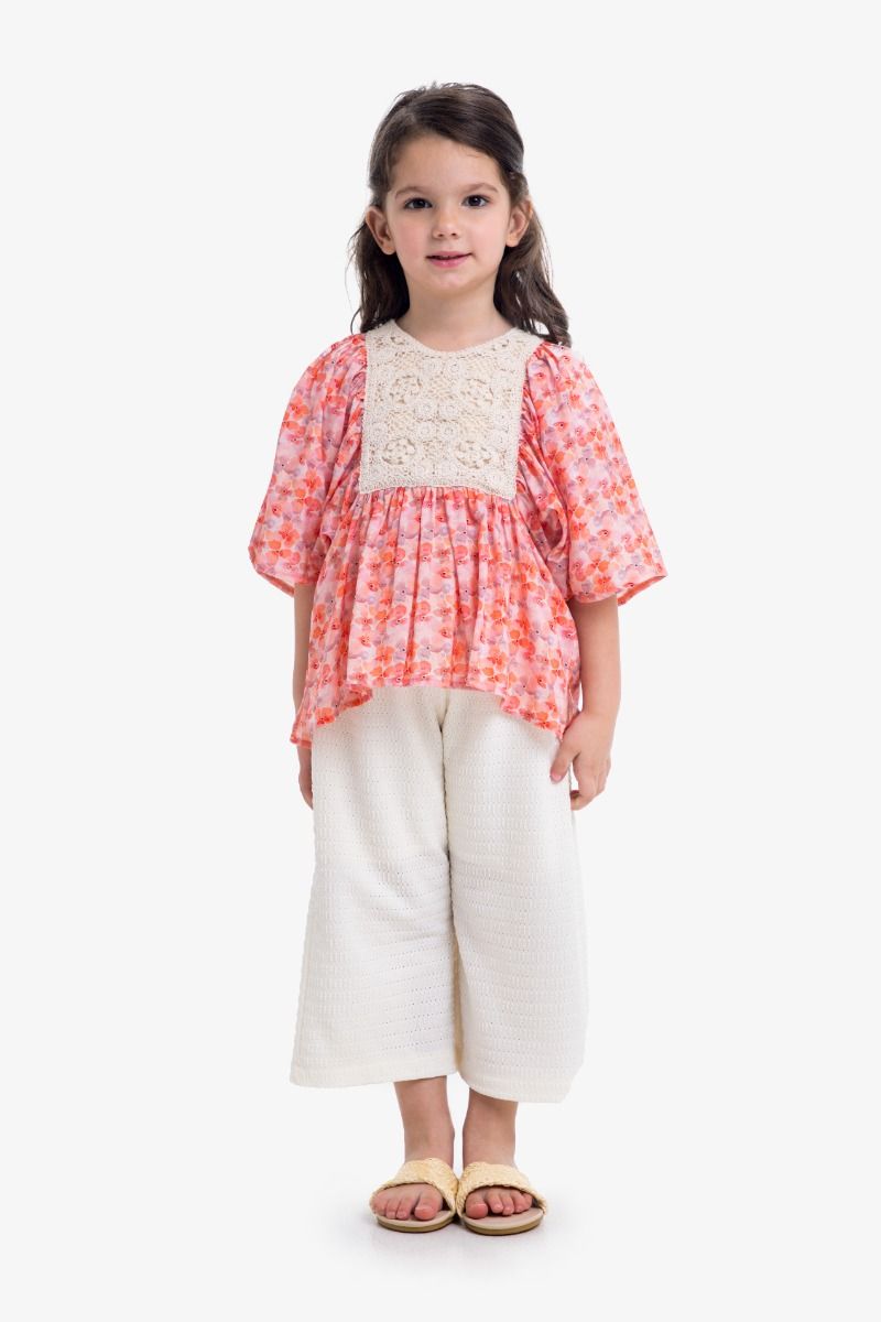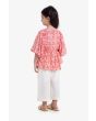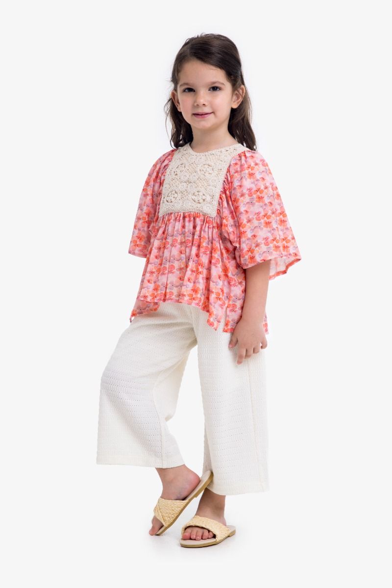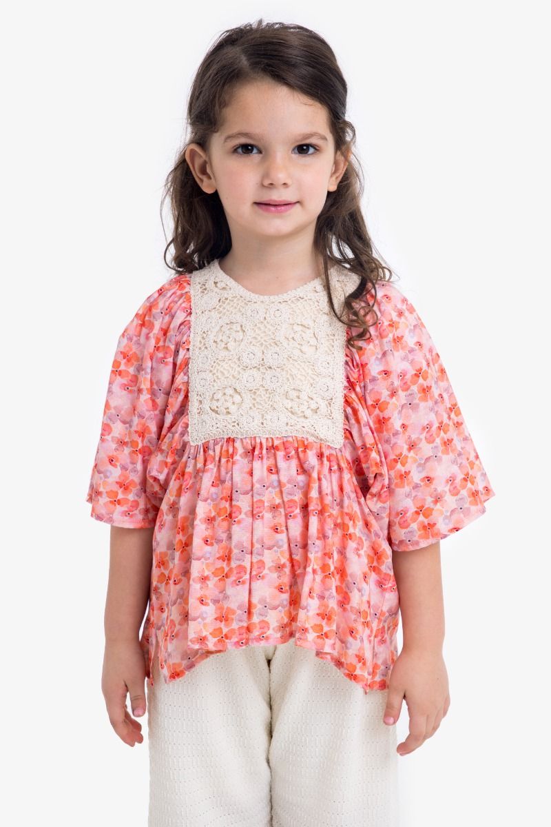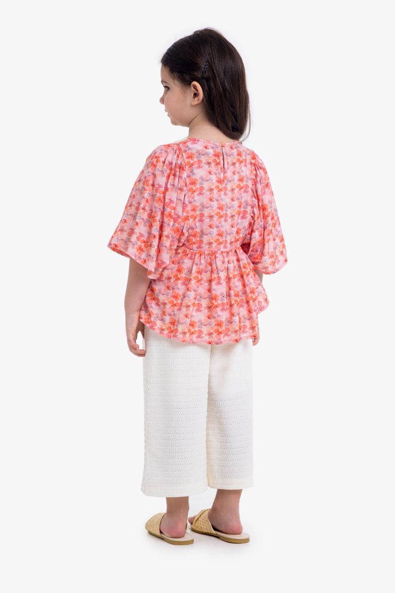 This Blouse will add a smart touch to your little girl's casual looks. It Features a Round Neckline, short Butterfly sleeves, Back button all-over Floral print.