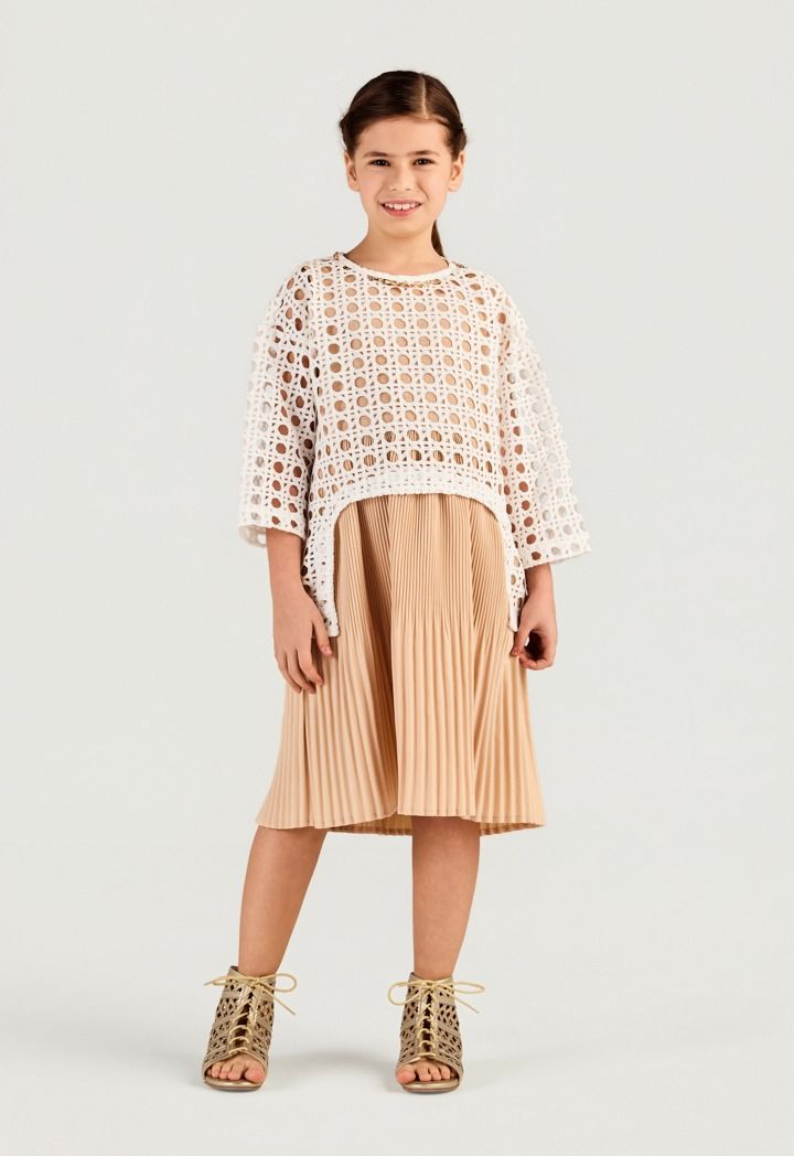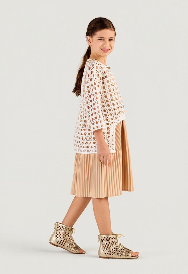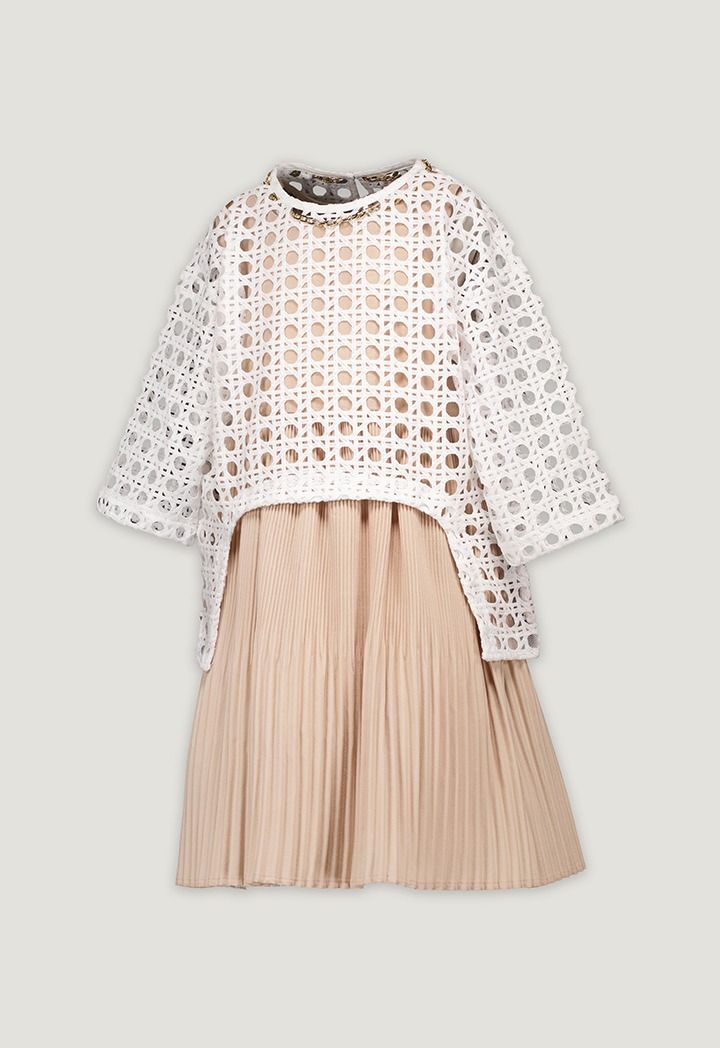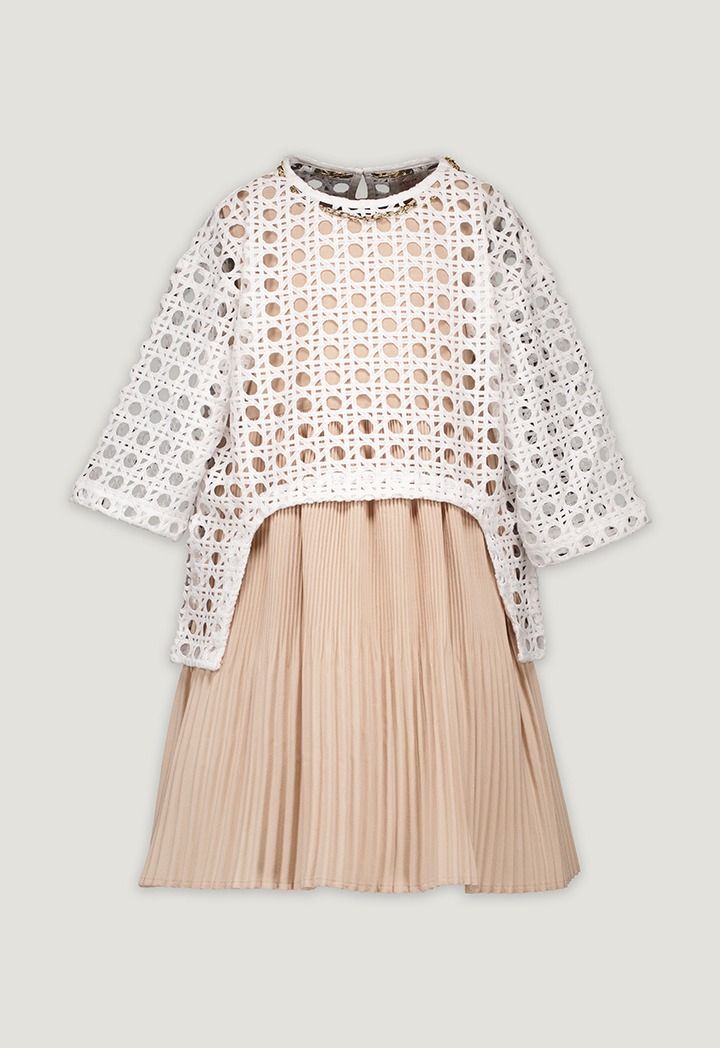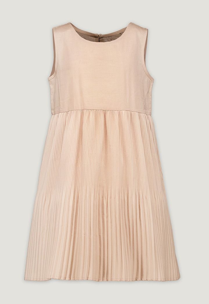 Design : Contrast, Lace Overlay, Pleated Sleeveless Dress