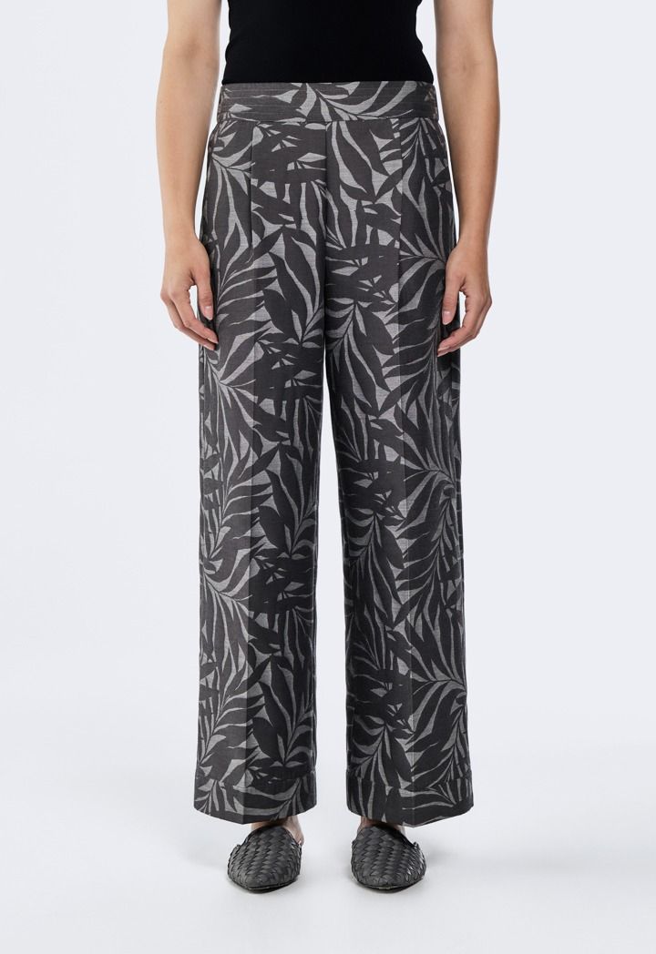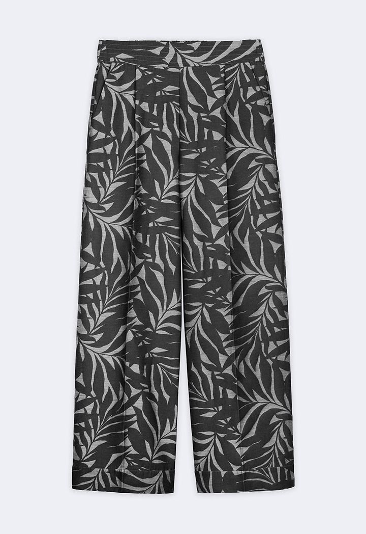 Elevate your outfit with the subtle elegance of leaf jacquard wide trousers.