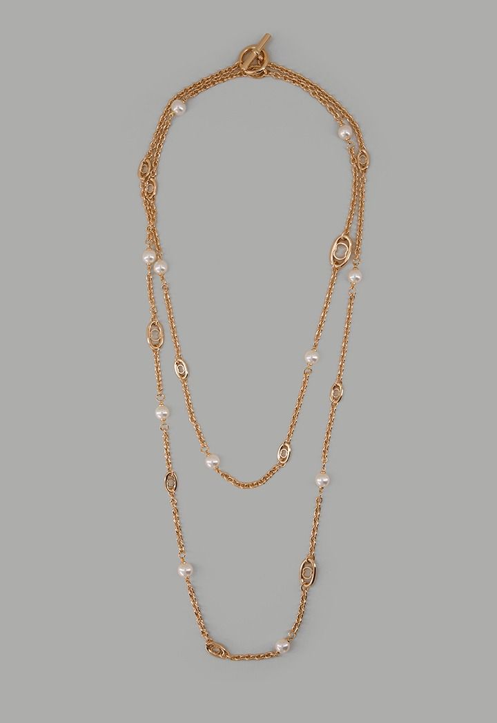 Include this long faux pearls necklace in your looks for a luxurious touch.