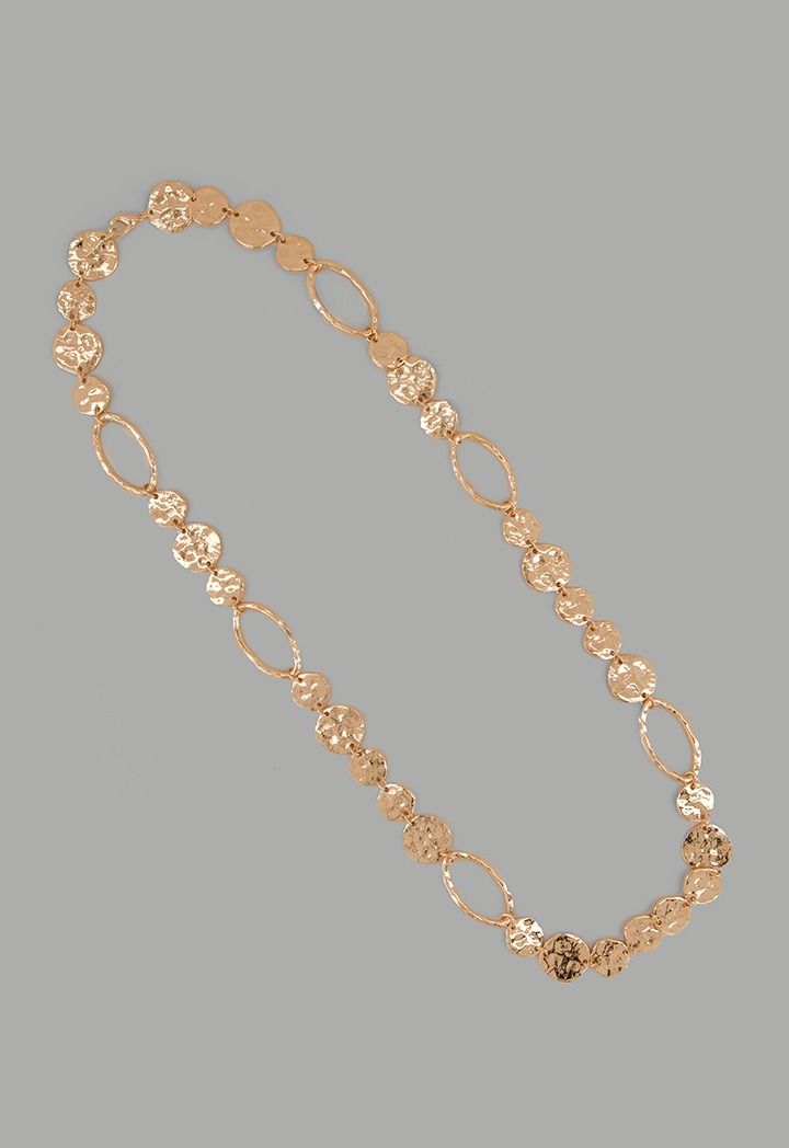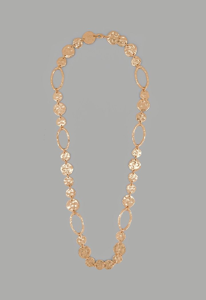 A simple necklace featuring a solid hammered design that is sure to be timeless.