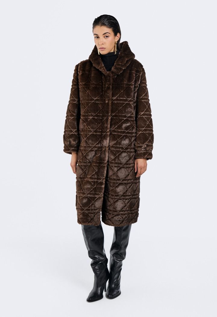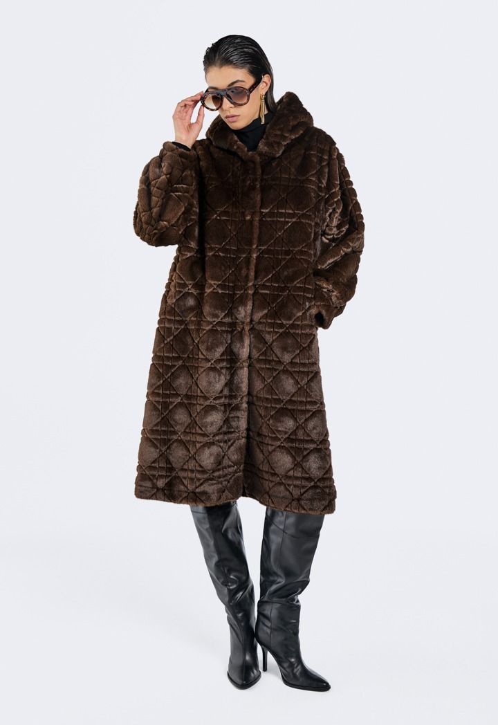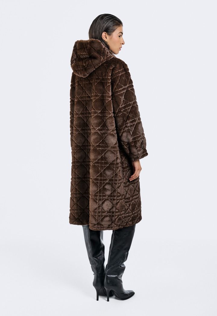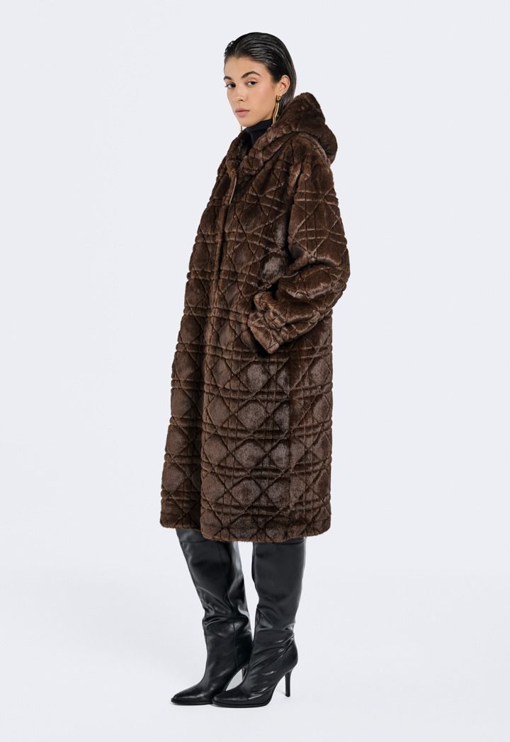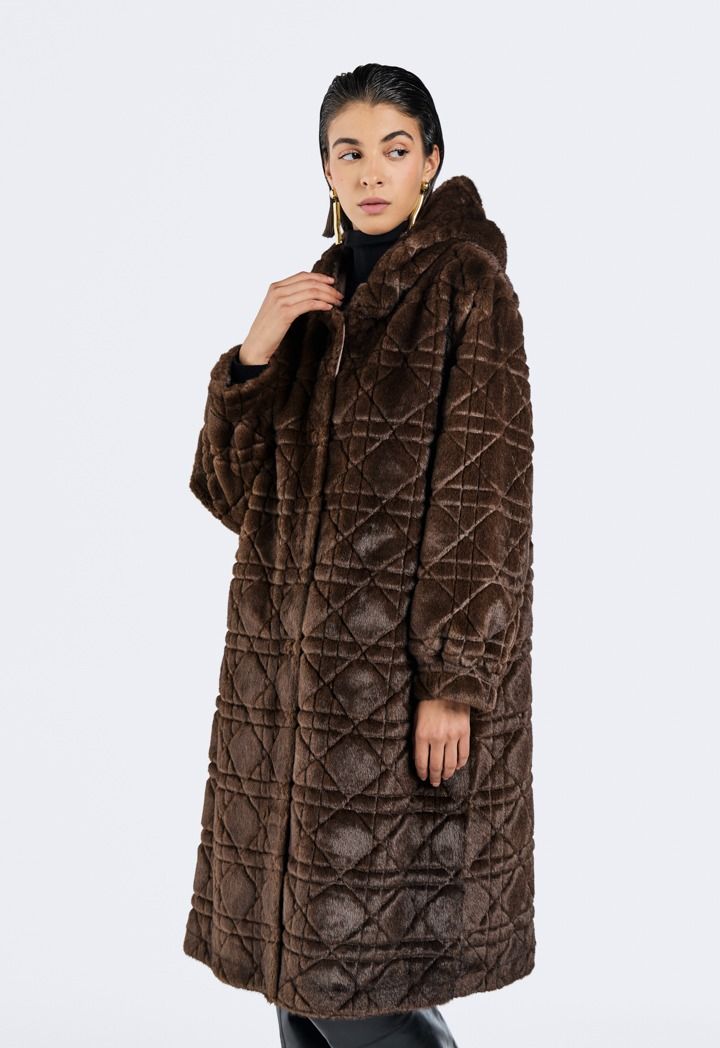 Long Hooded Faux Fur Jacket