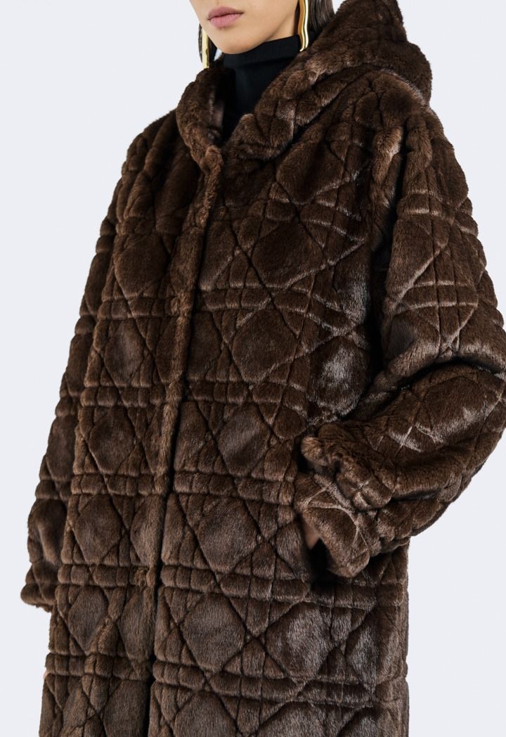 A solid jacket that features a Faux Fur design with a hoodie.