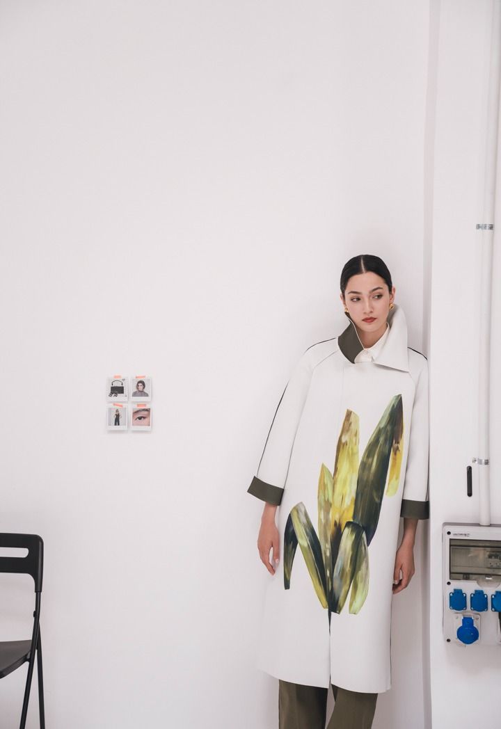 Design: Printed, Oversized, Self-Fabric Belt, Stitched Details