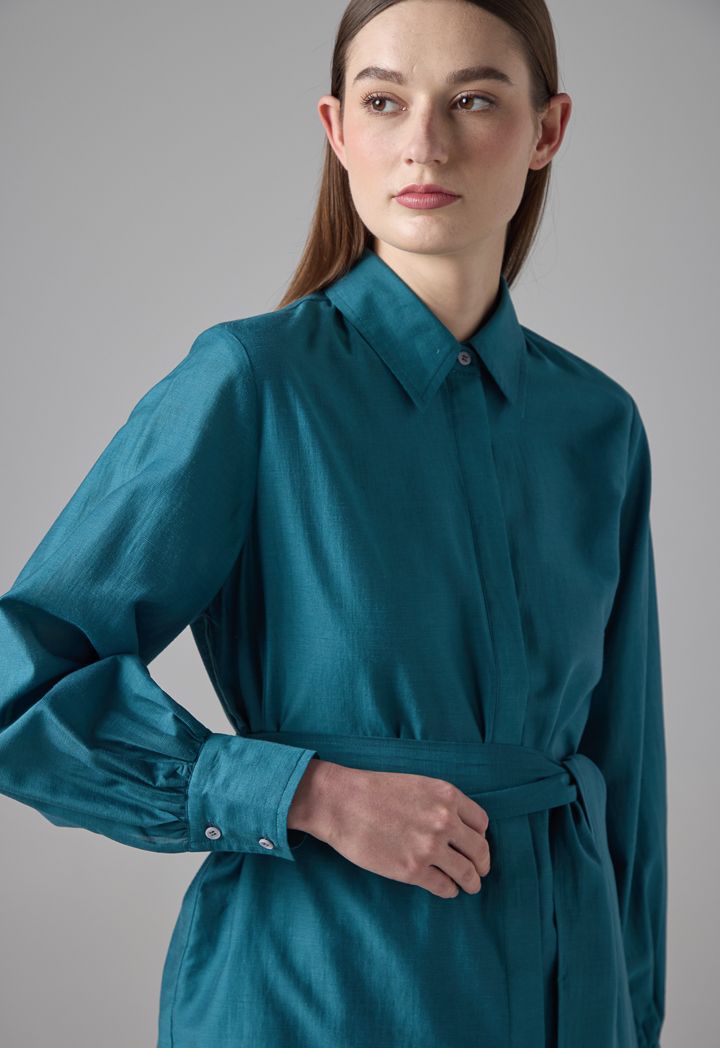 Long Sleeve Basic Belted Shirt |
