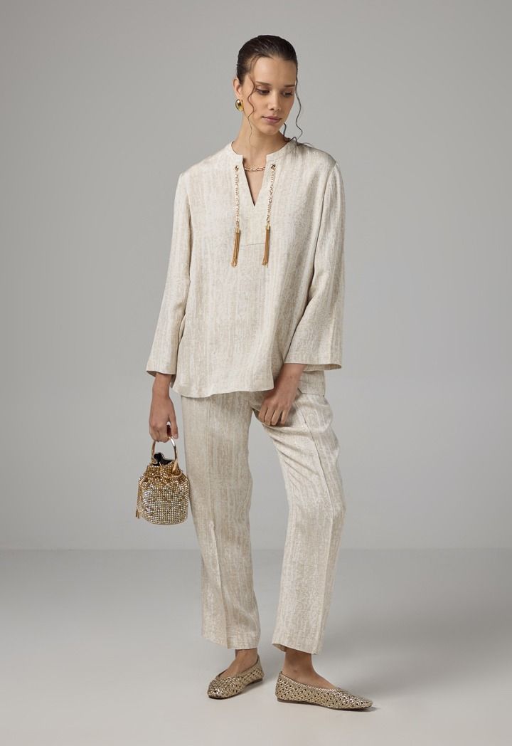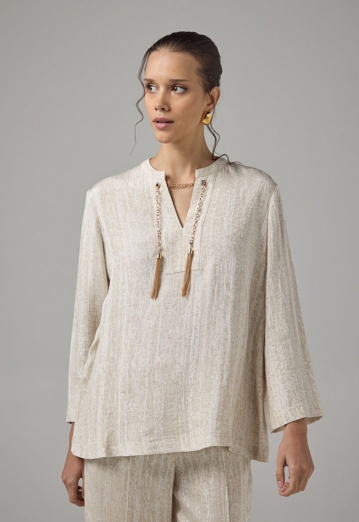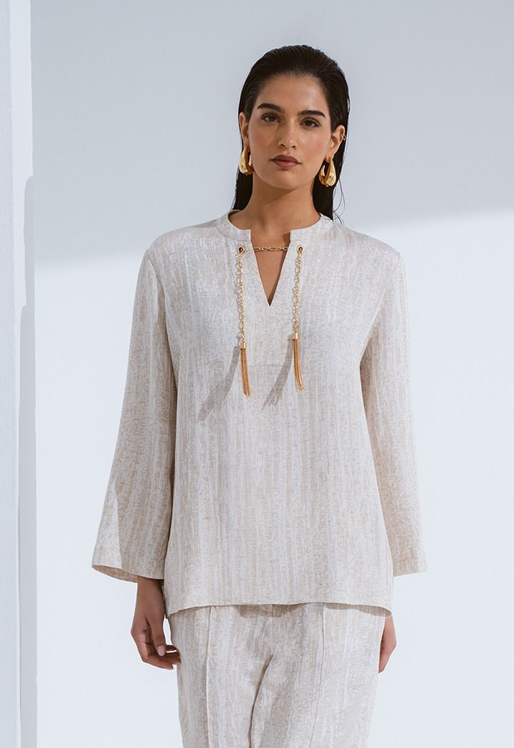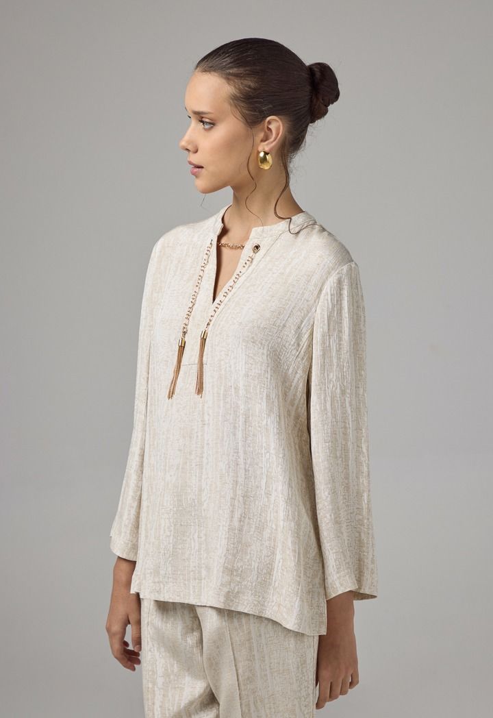 Long Sleeve Blouse With Detachable Chain |