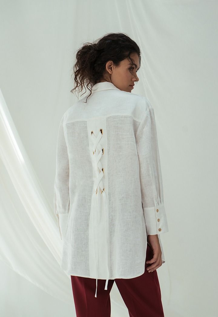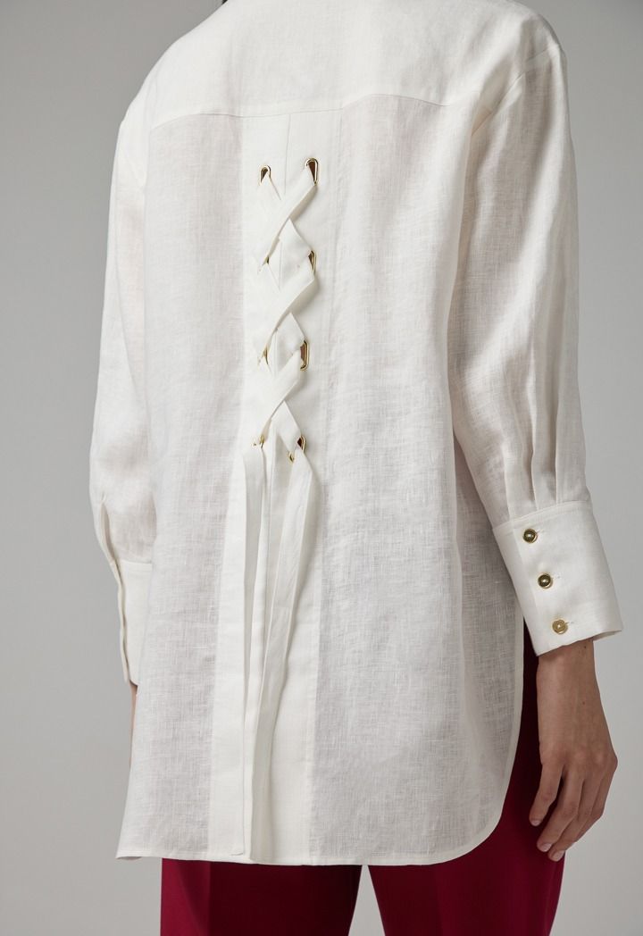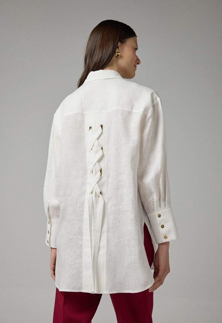 Design: Solid, Linen, Back Tie Detail, Side Slit At Hem, High-Low