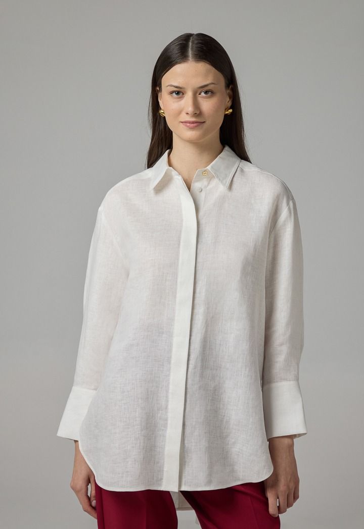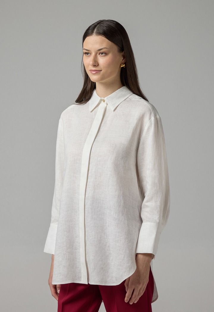 Long Sleeve High-Low Linen Shirt |