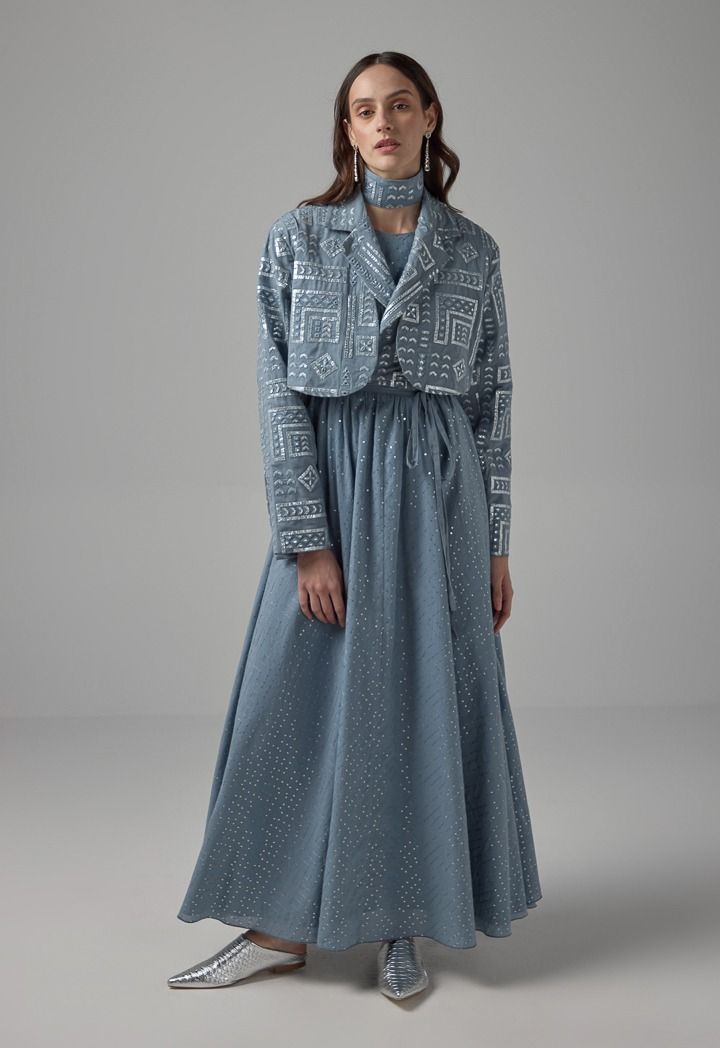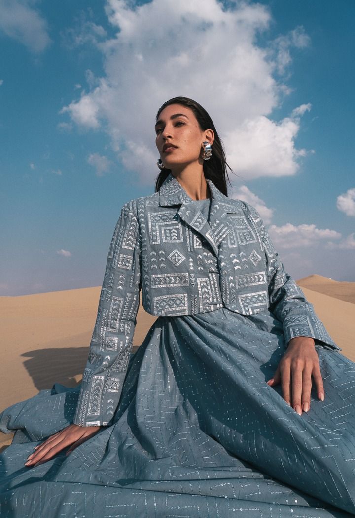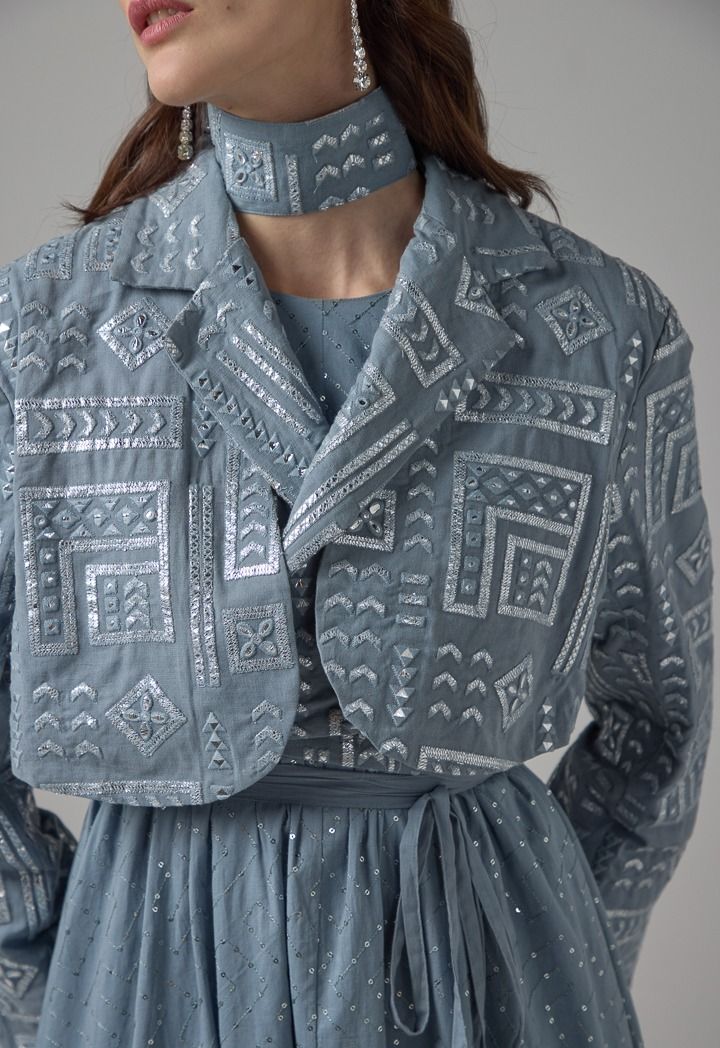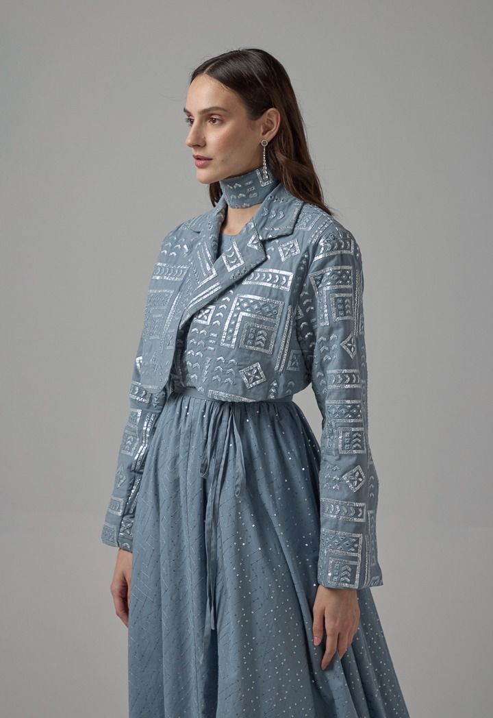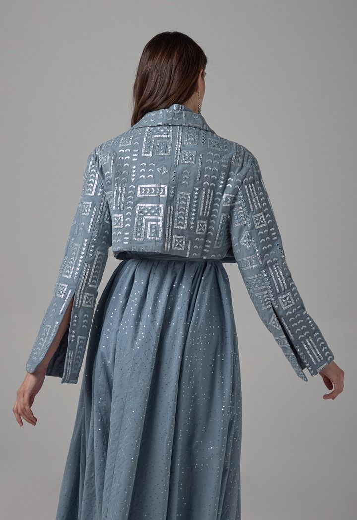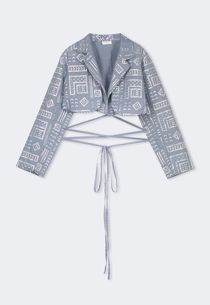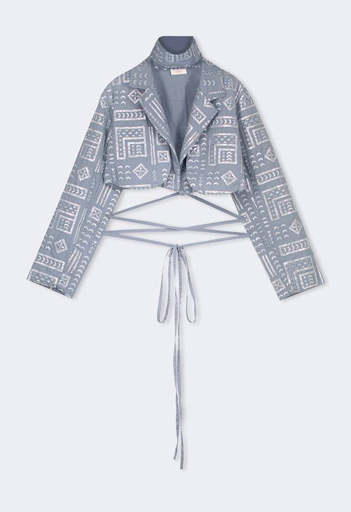 Long Sleeve Mirror Embroidered Cropped Jacket |
