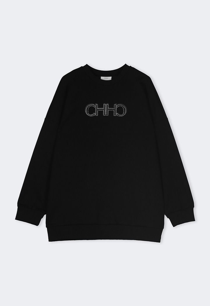 Design: Solid, Monogram, Drop Shoulder, Ribbed Hem, Crystal Embellished