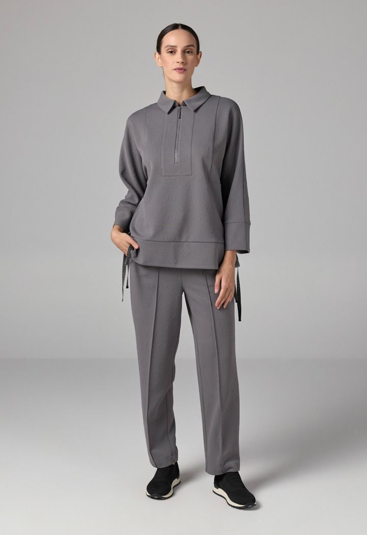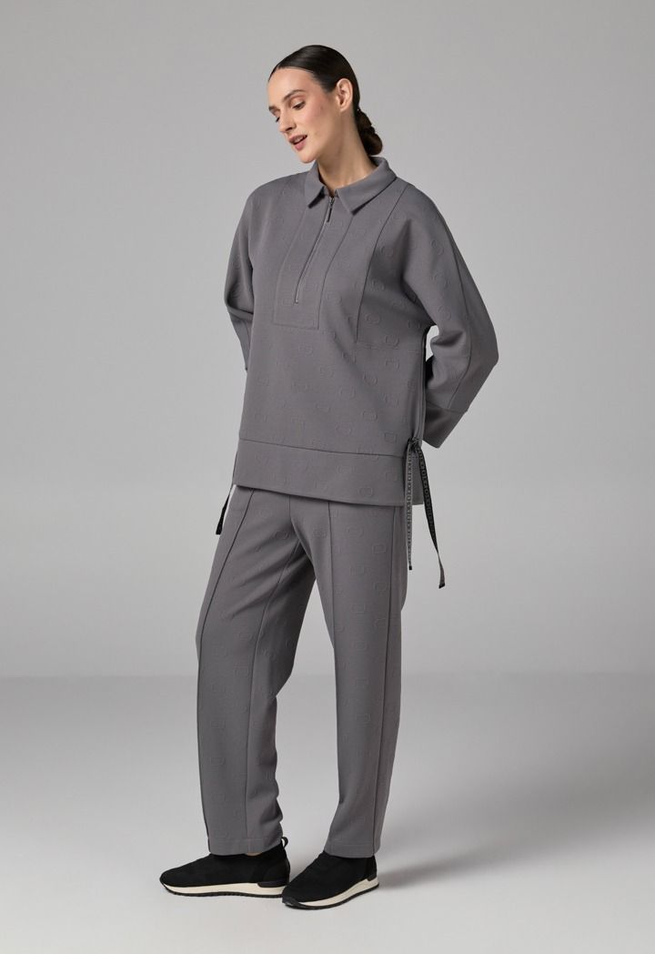 Design: Solid, Monogram, Side Slit At Hem, Drawstring At Sides
