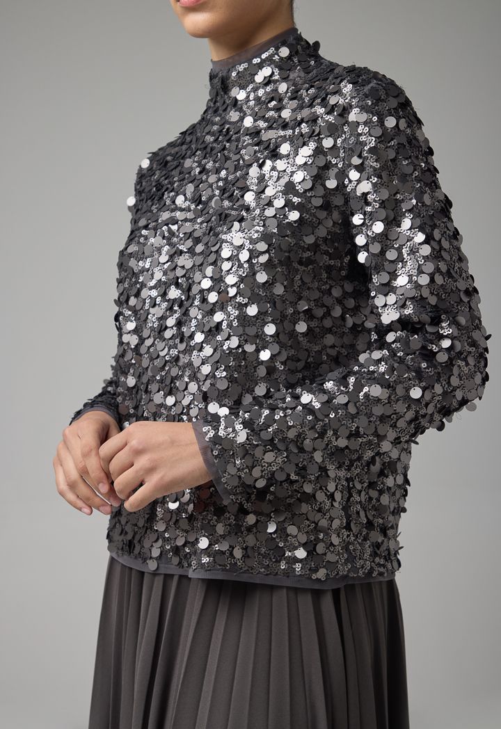 Add a stylish look to your casual outfits with this solid blouse Embellished Sequin.