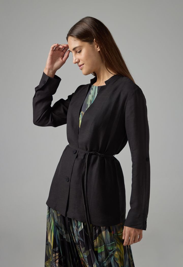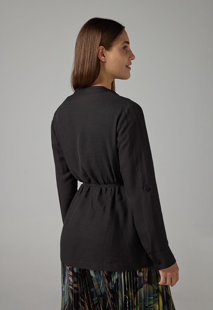 Long Sleeve Solid Belted Jacket |