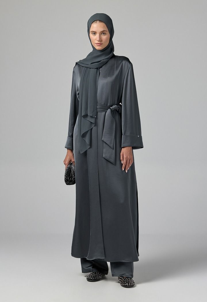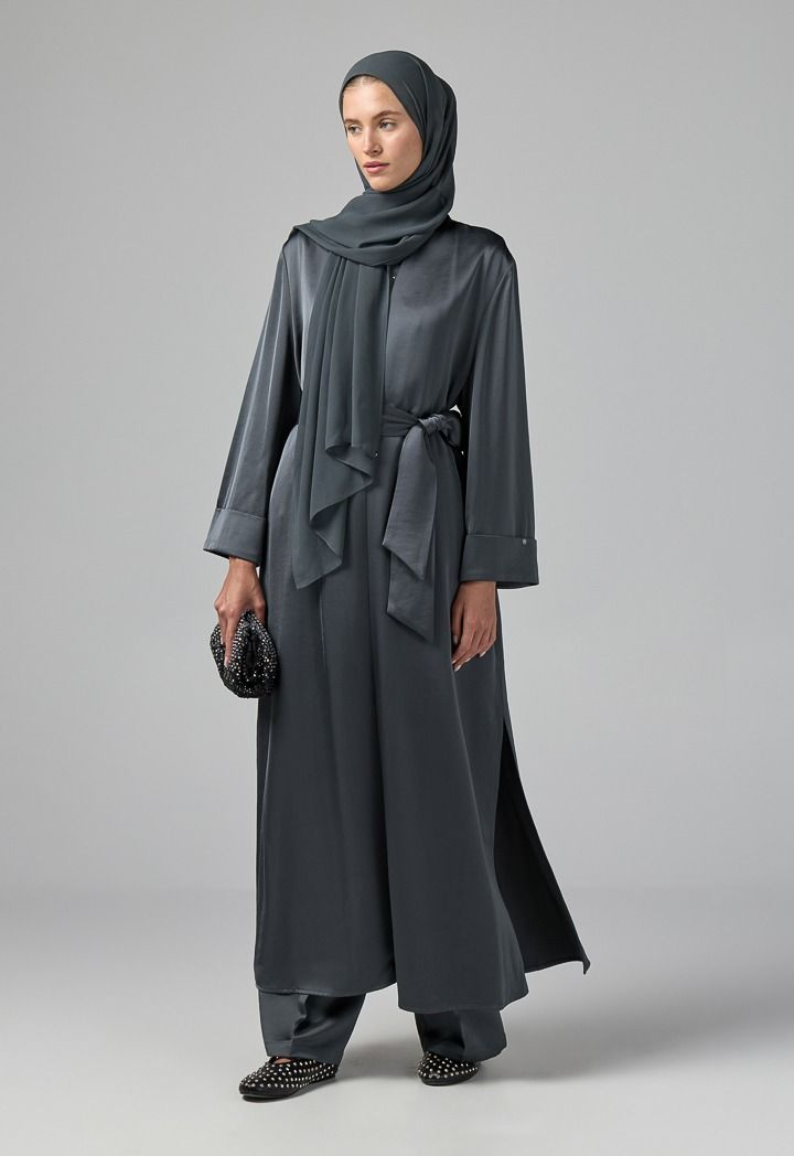 Design: Solid, Side Pockets, Side Slit At Hem, Belt, Hijab