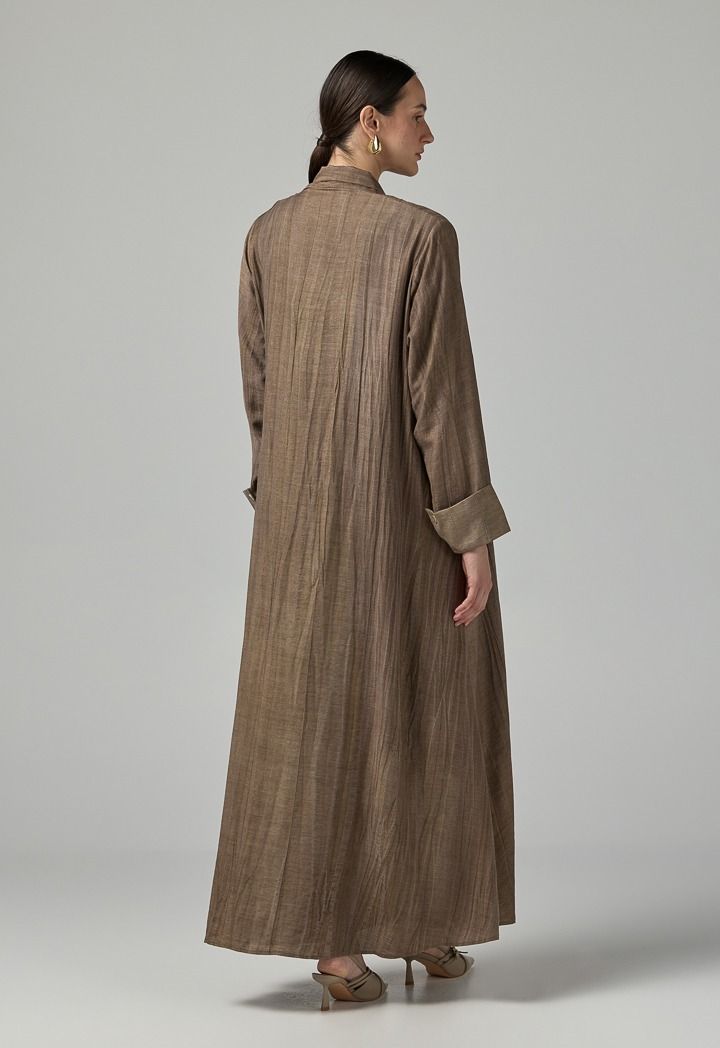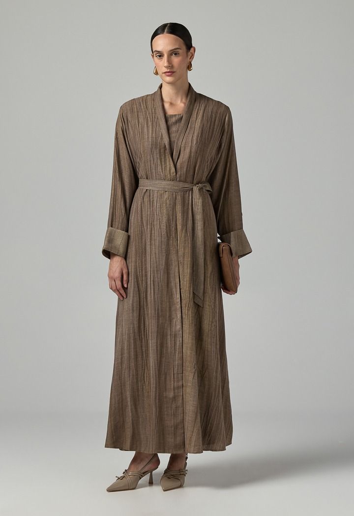 Long Sleeves Crinkled Maxi Open Abaya With Hijab (2Pcs) |