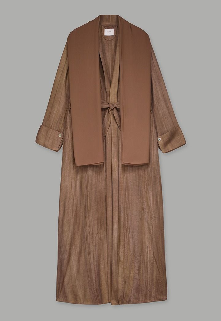 Design: Solid, Crinkled, Texture, Side Pockets, Self-Fabric Belt, Hijab