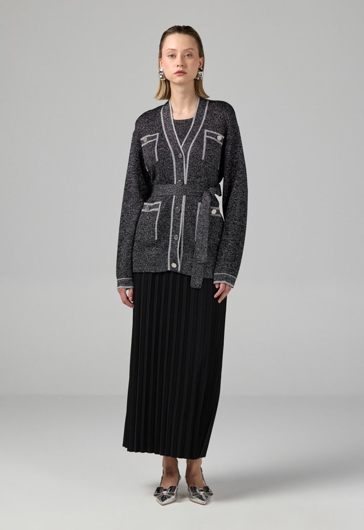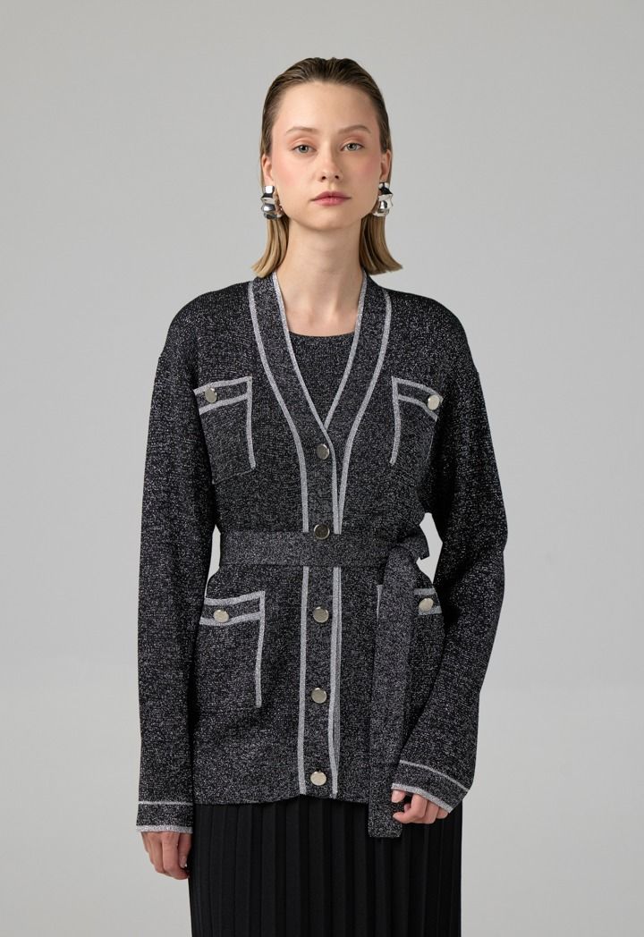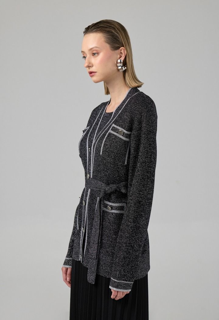 Design: Contrast, Knitted, Belted, Ribbed, Lurex, Front Pockets