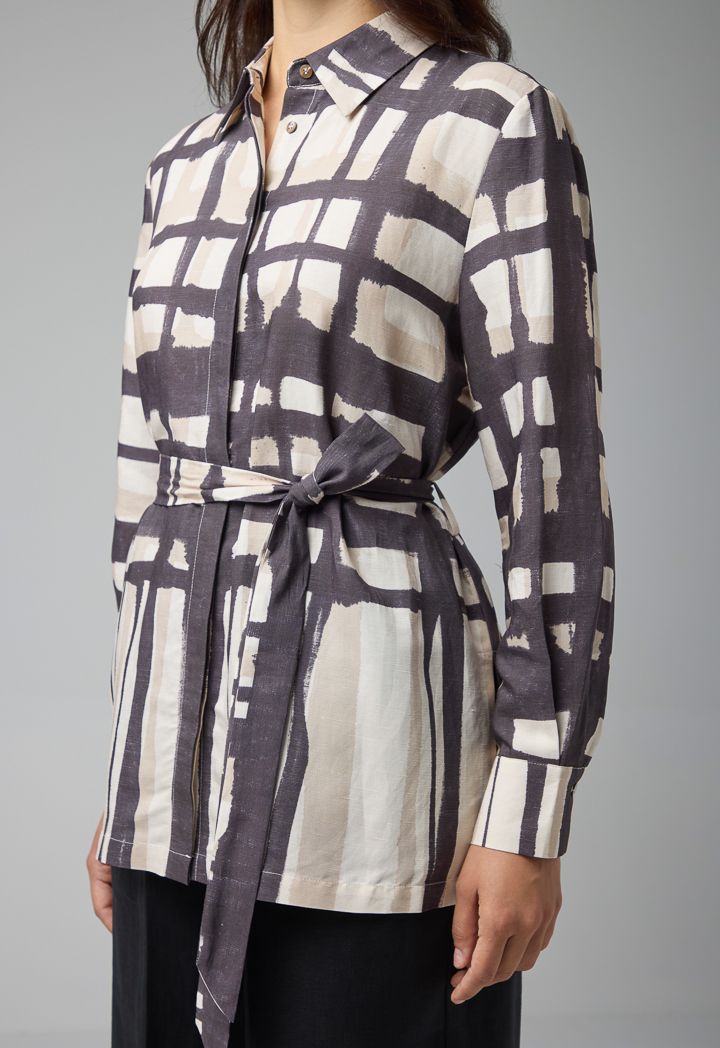 Look fabulous and Link fashion with relaxation with this Printed Belted Shirt.