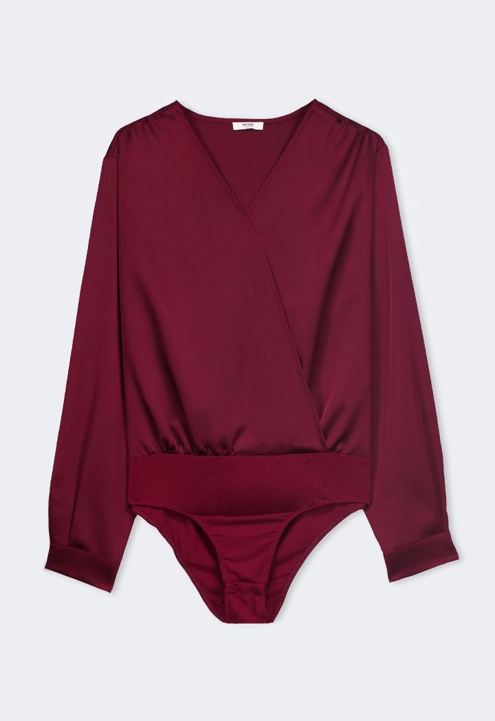 Long Sleeves Satin Bodysuit Top |