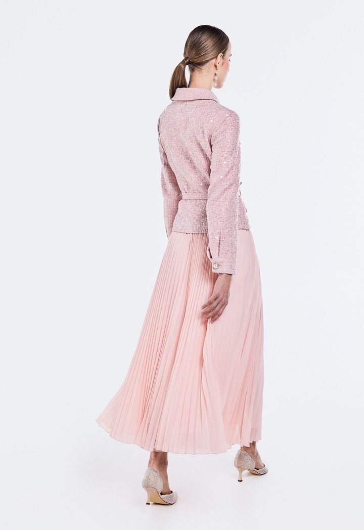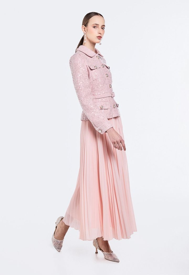 Get ready to shine this season in this dress. A real statement piece featuring a pleated skirt and attached Jacket that's guaranteed to turn heads. This one is giving us all the glam vibes.