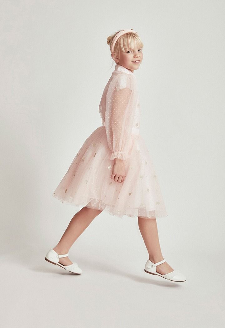 A fun to wear set filled with lots of details from textured polka dots to organza fabric and lurex embroidery.