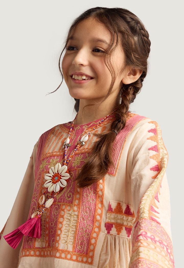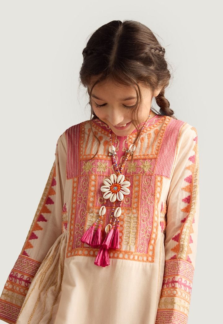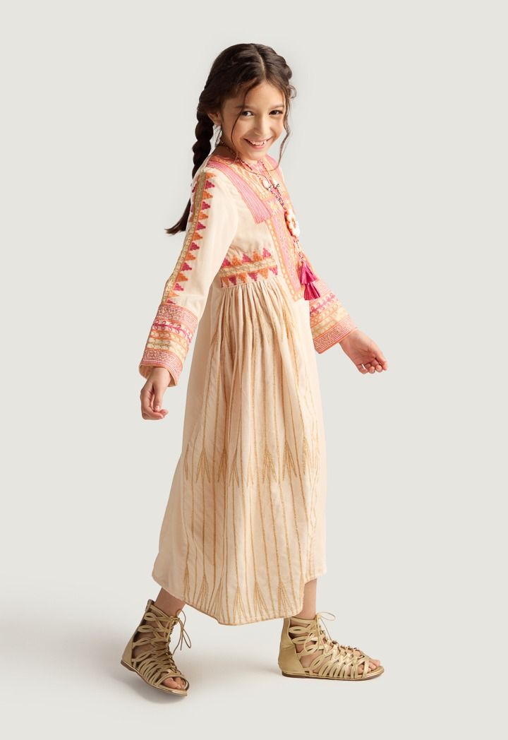 Add a touch of style to your daughter's closet with this Long-sleeved dress featuring an embroidered design.