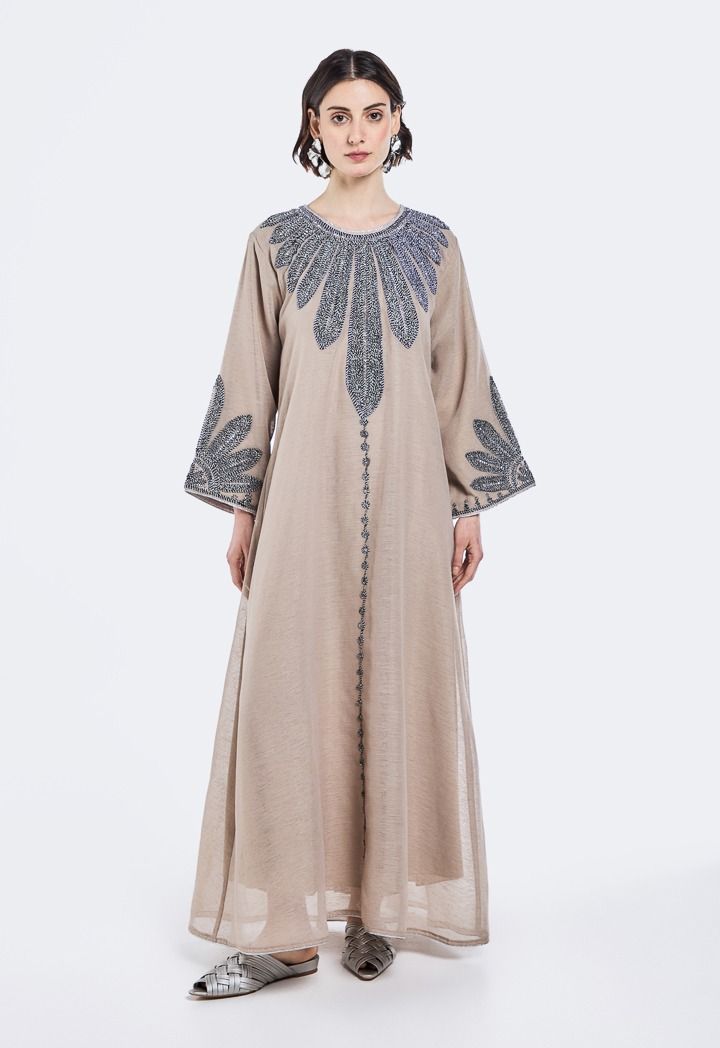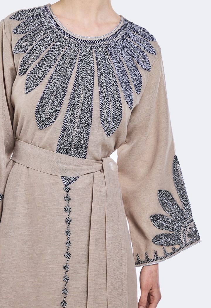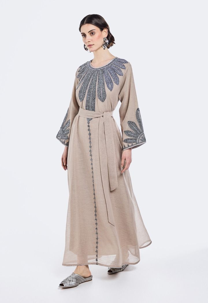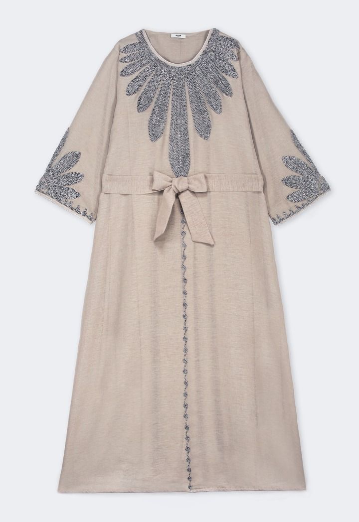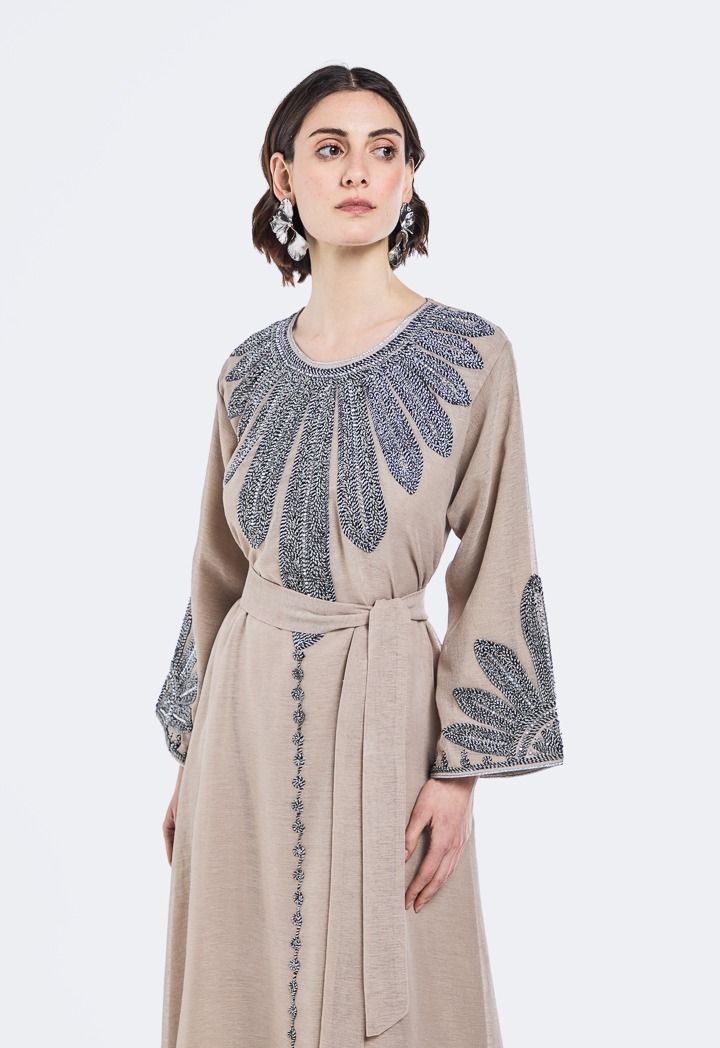 Design: Lurex, Embroidered, Flared, Beads, Lining, Belt