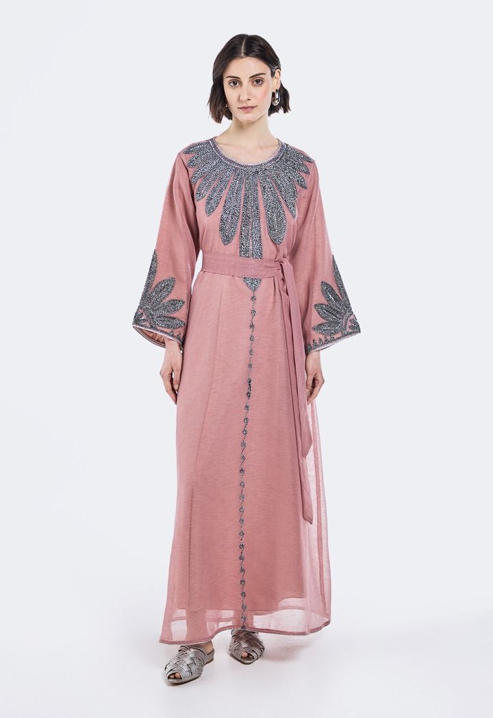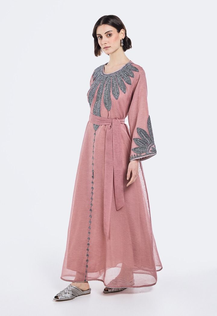 Design: Lurex, Embroidered, Flared, Beads, Lining, Belt